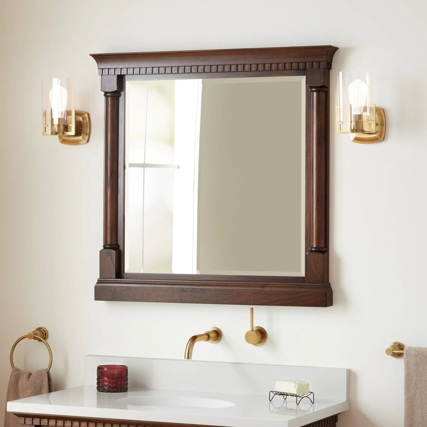 For a charming addition to your bathroom, the Claudia Vanity Mirror is a perfect choice. Teeming with delicate detailing in an antique coffee finish, this mirror combines function and elegance. Built of mahogany, this piece ensures lasting beauty, while a French cleat mounting system offers secure and easy installation.