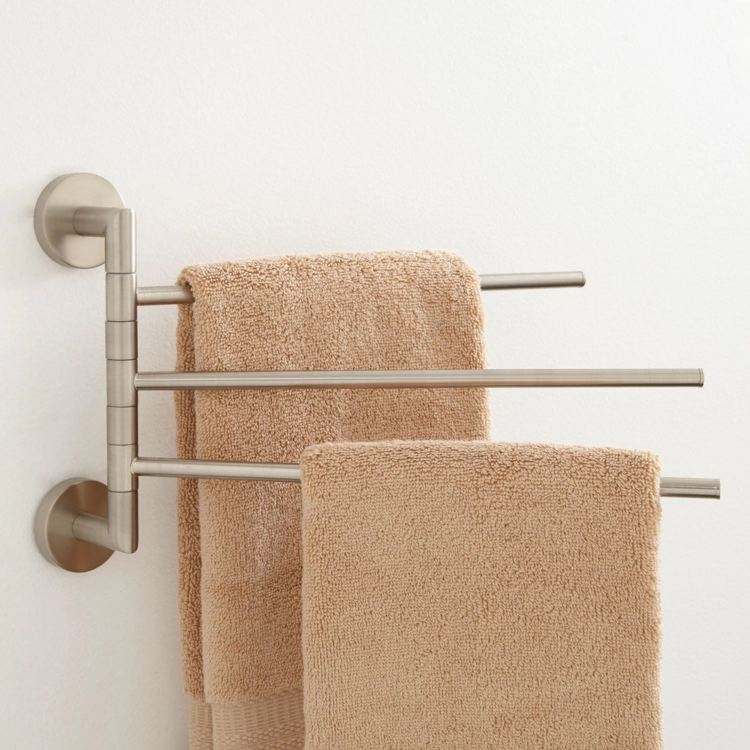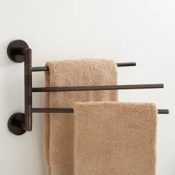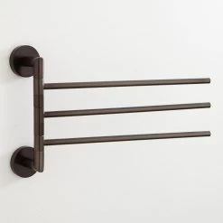 The Colvin Triple Swing Arm Towel Bar features a minimalist design that provides more space for hanging towels and garments. Made of solid brass, this towel bar features convenient, 180-degree swiveling arms and concealed hardware.