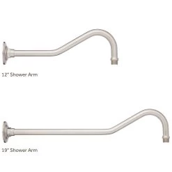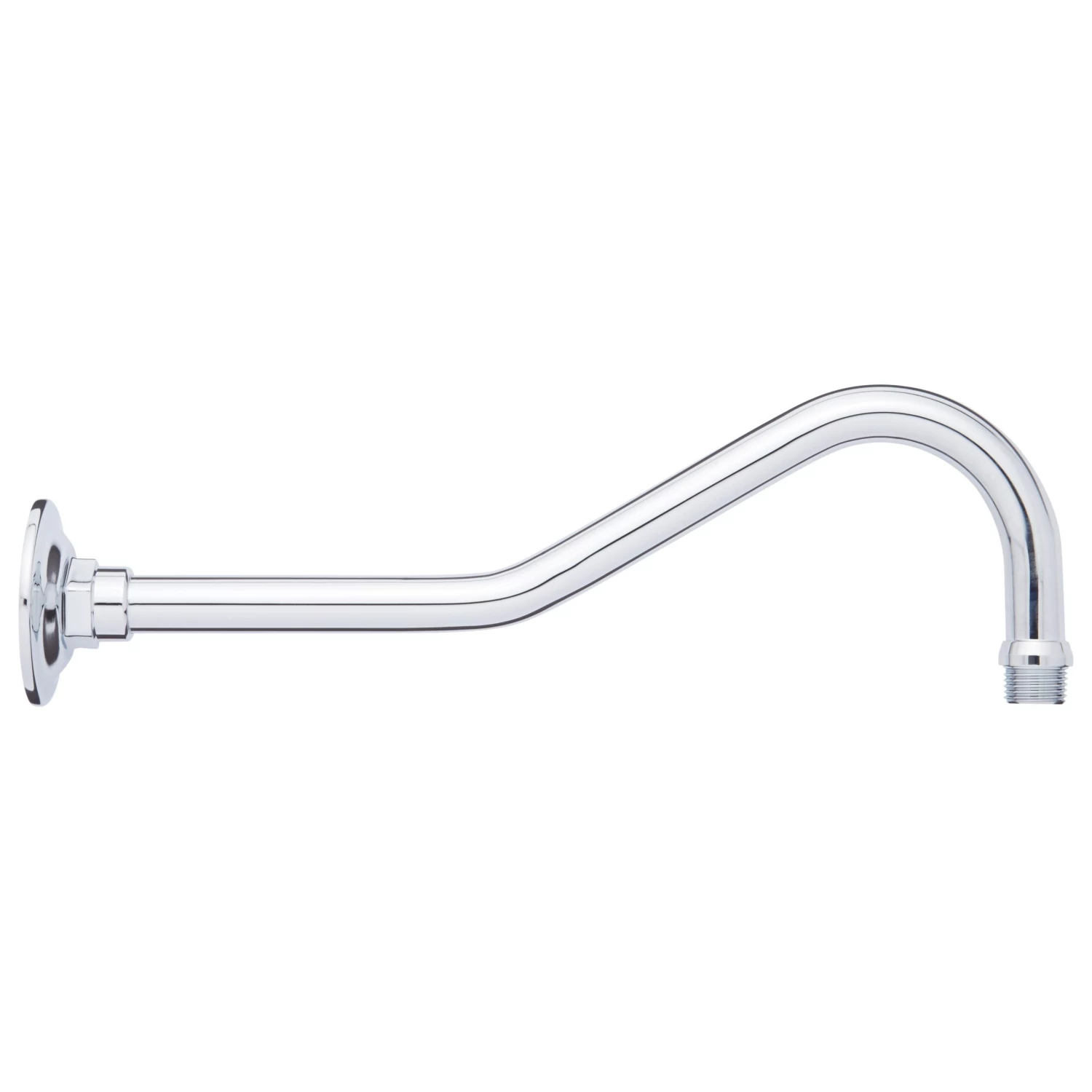 This Contemporary Hook-Shaped Shower Arm will fit all standard shower heads. Solid brass construction ensures that this product remains in premium condition year after year. A welded flange comes with the shower arm.