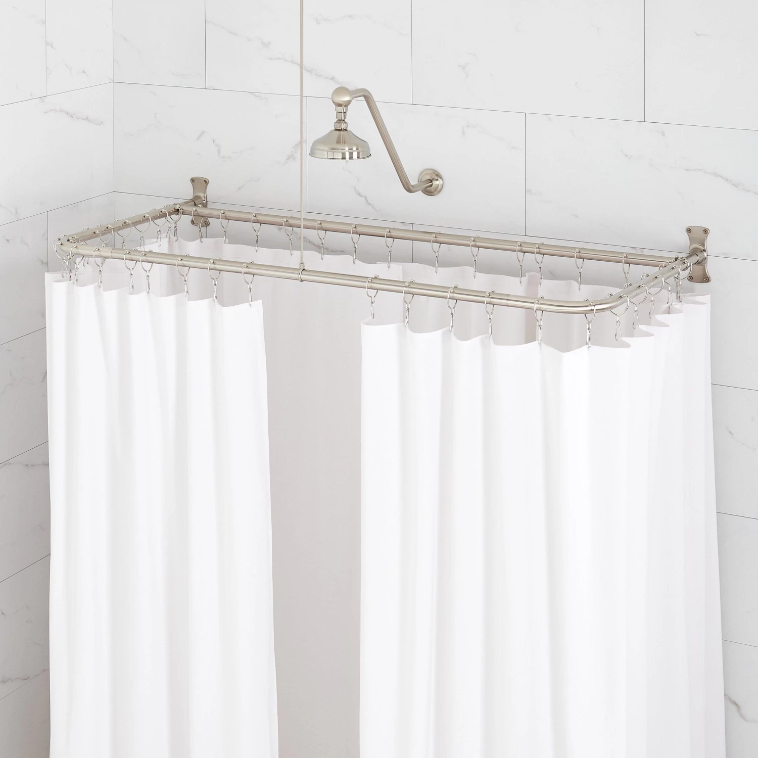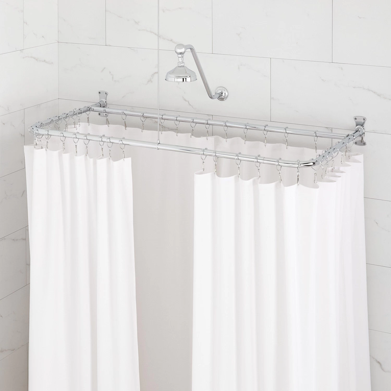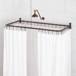 Wider than most D-style shower rings, this curtain frame extends farther from the wall and allows for a more spacious, comfortable shower. Includes 36″ support and jumbo style wall flanges. Add some of our solid brass roller ball rings and a shower curtain to complete the setup. This corrosion-resistant product is made to last.
