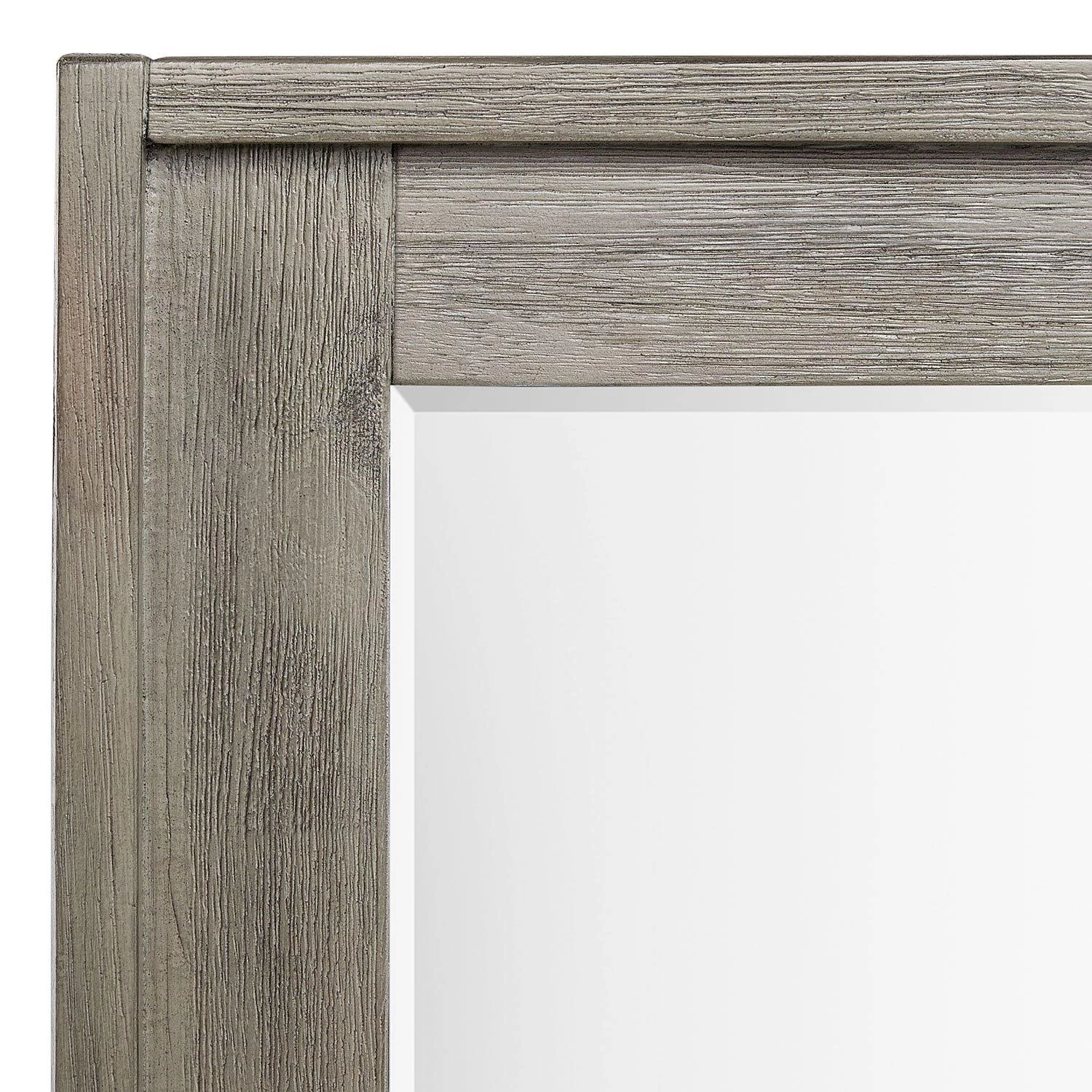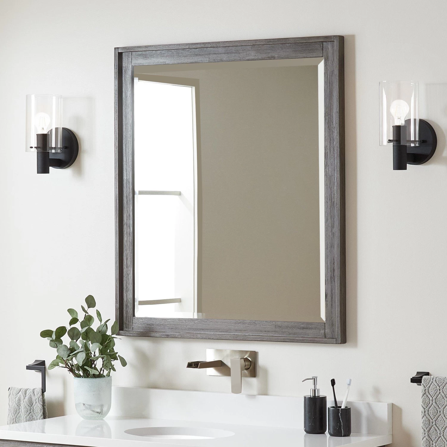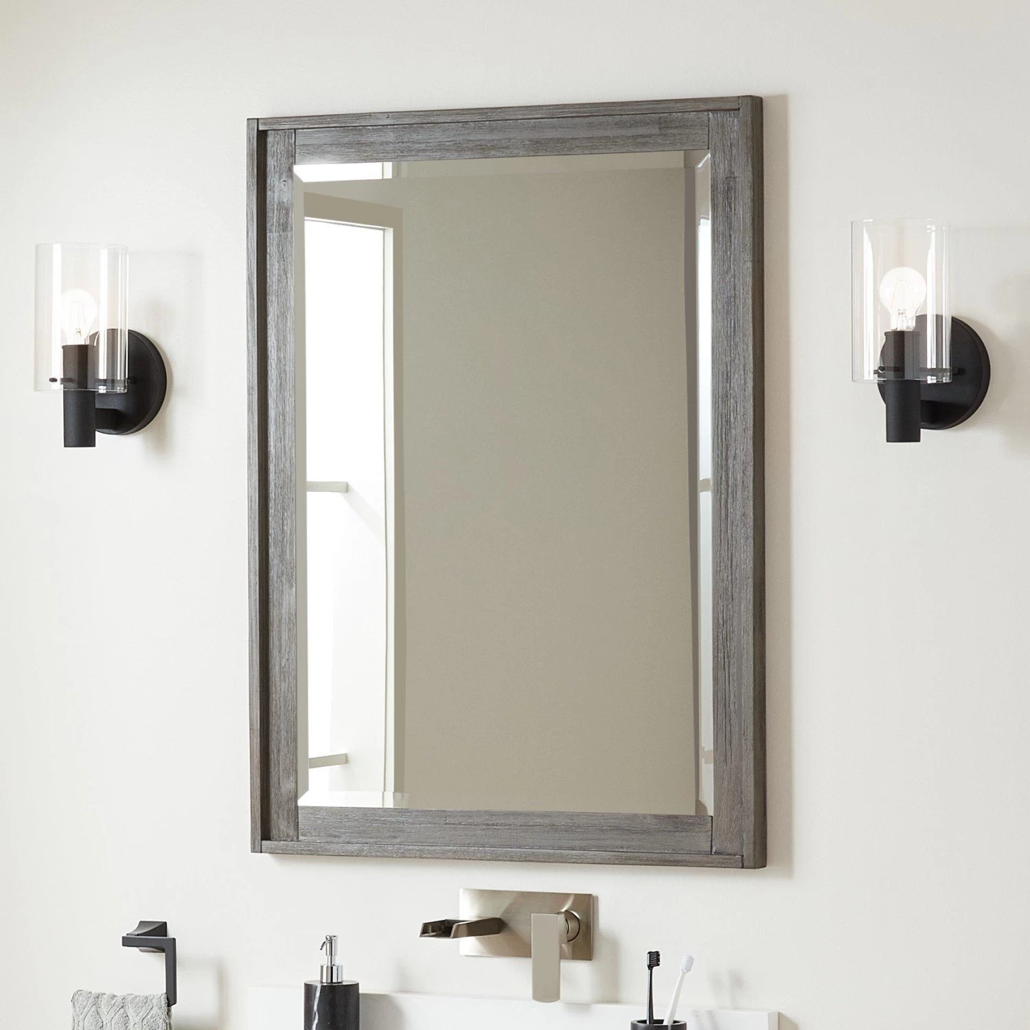 Polish off your bathroom update with the Devora Vanity Mirror. Set in a port gray finish, this piece features a rectangular, wooden frame with timeless beveled-edge detailing. Perfectly complementing its matching vanity, this mirror will also add a sophisticated quality to any space. Mounting hardware is included for easy installation.