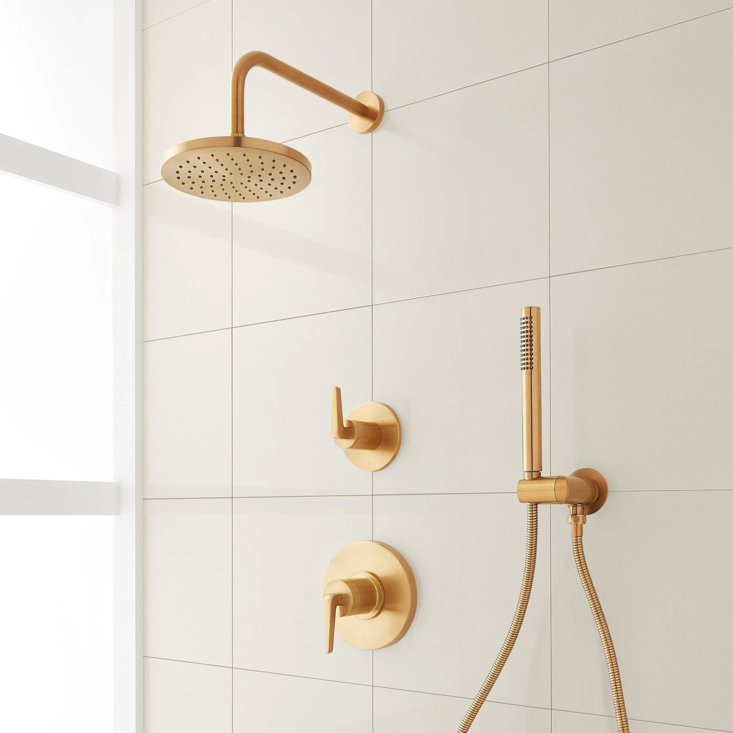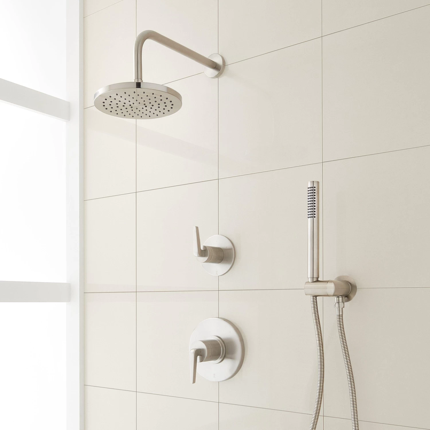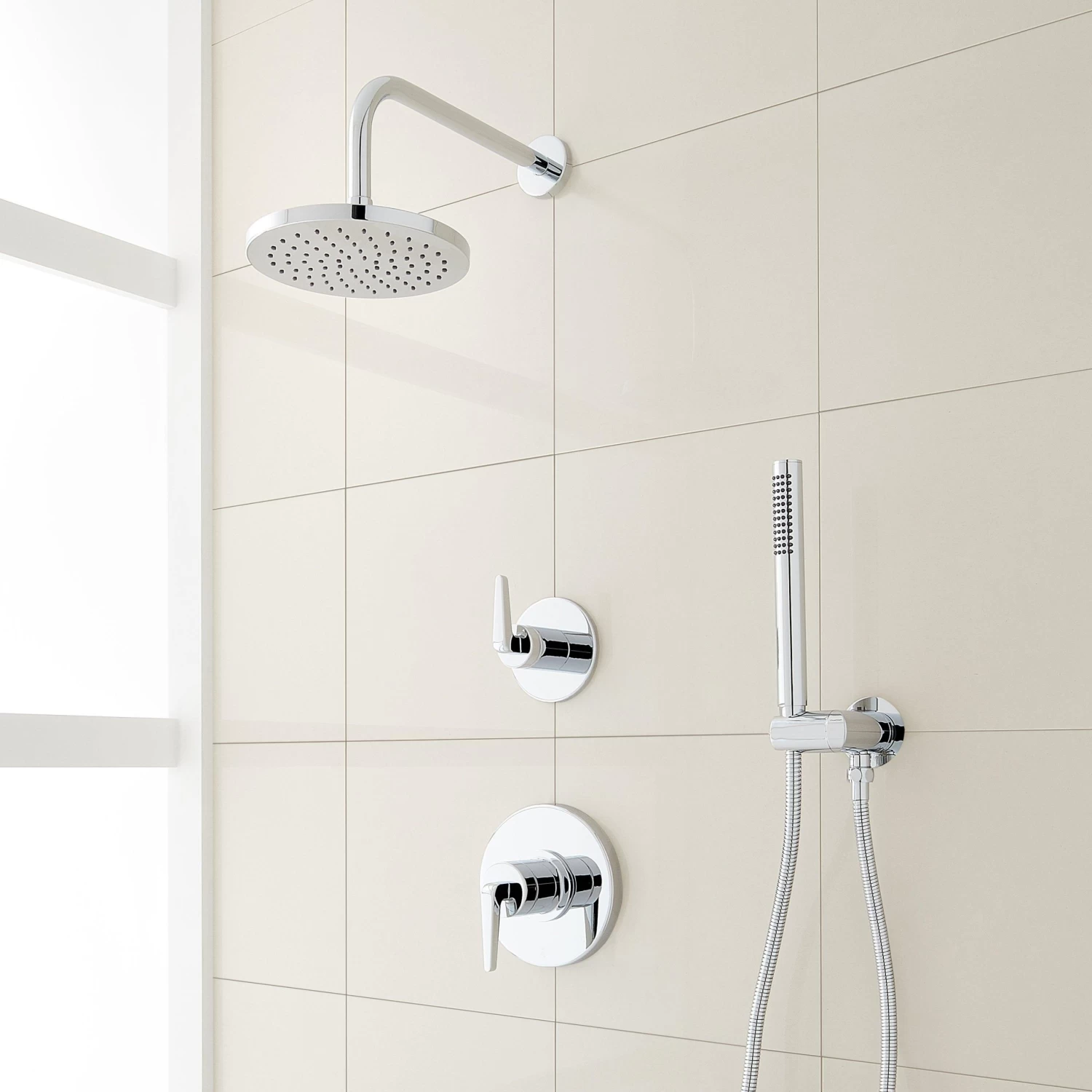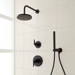 Encapsulate modern luxury with the Drea Pressure Balance Shower System with Hand Shower. Joining a rainfall shower head, a single-lever pressure balance handle maintains your desired water temperature and pressure while a hand shower adds convenience to your routine. Functional while emitting a minimalist look, this system features clean, angular lines throughout for an elevated look. The Drea is available in a variety of corrosion-resistant finishes for lasting beauty that perfectly complements your space.