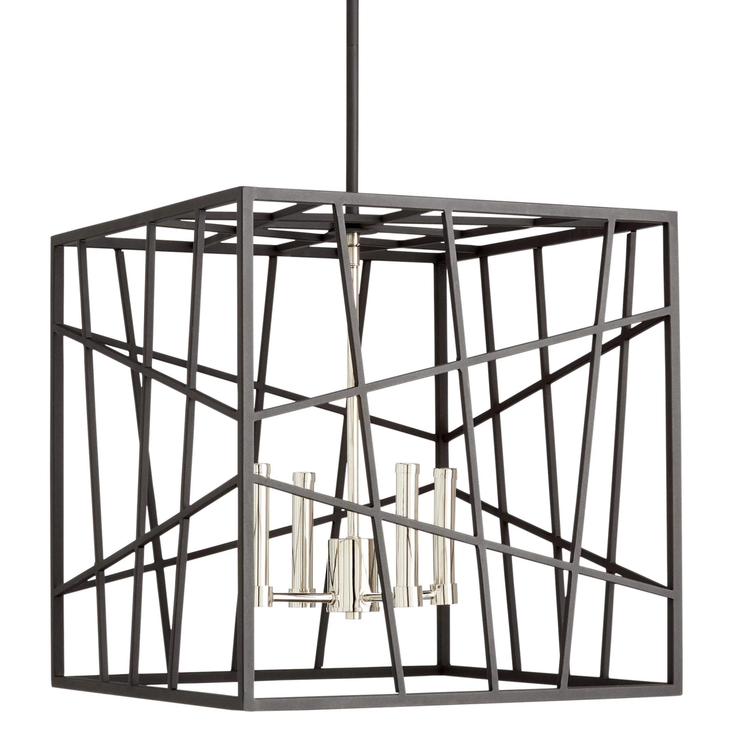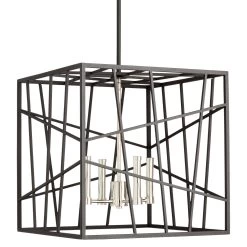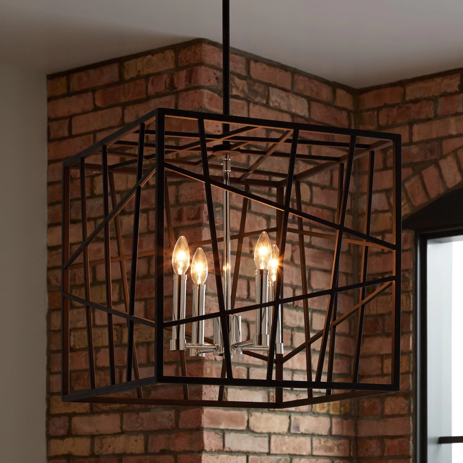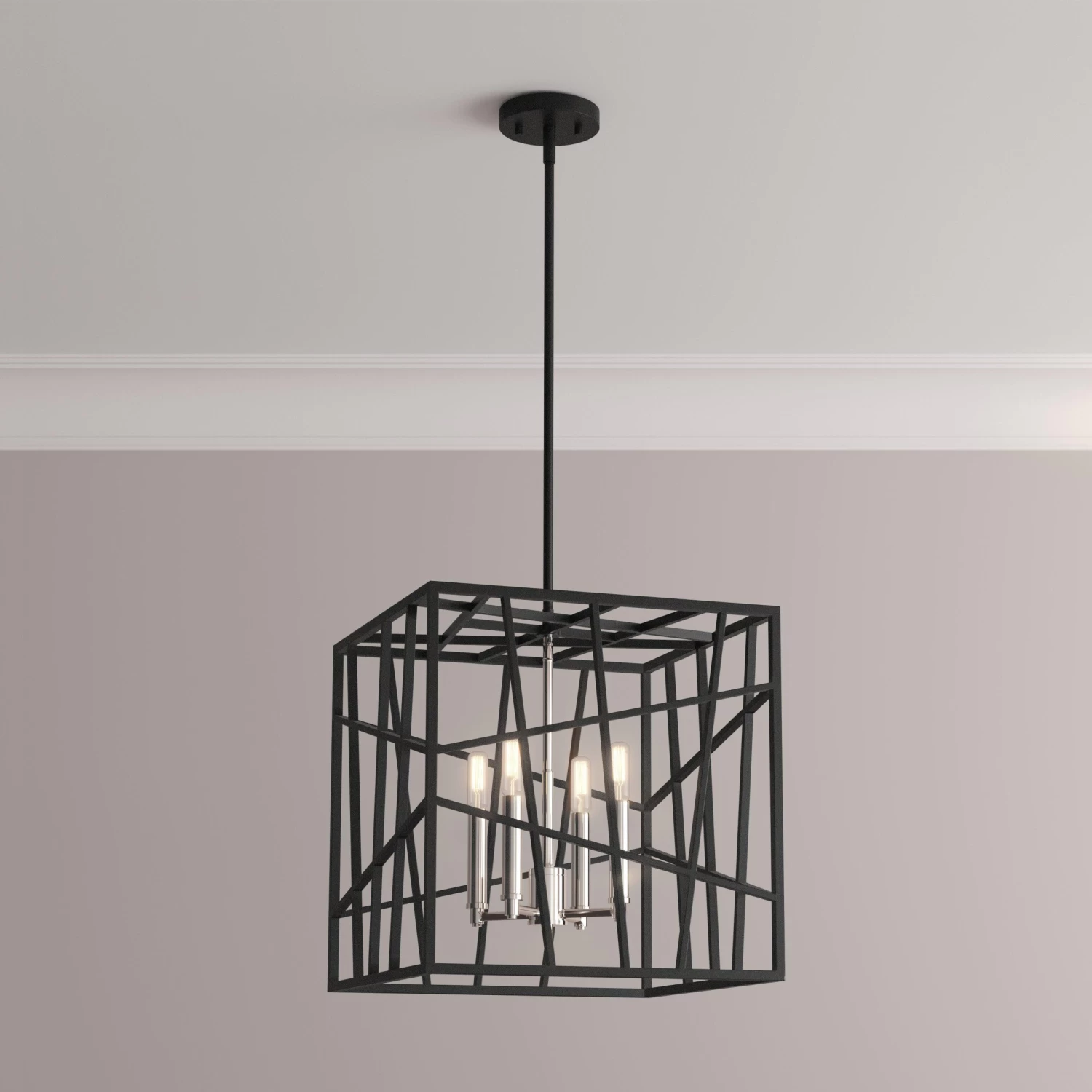Make a sculptural statement with the dynamic and abstract Dulancey 4-Light Pendant Chandelier. Its textured black exterior perfectly contrasts the polished nickel candelabra lamps for an exciting interplay of shapes and colors. A mid-century modern design, the Dulancey’s clean lines and open asymmetrical cage will add exciting drama to any space. Comes with hardware needed for an easy installation.