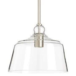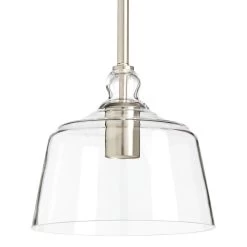 Provide your space a tasteful update with the Eastland Pendant Light. This modern industrial silhouette features a clear glass shade and a metal downrod, making it a wonderfully durable choice for your home. This fixture accepts a single light bulb and can be mounted on a sloped ceiling at up to a 90-degree angle. Mounting hardware is included for easy installation.