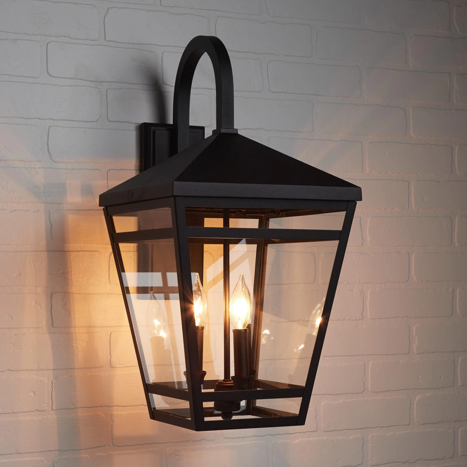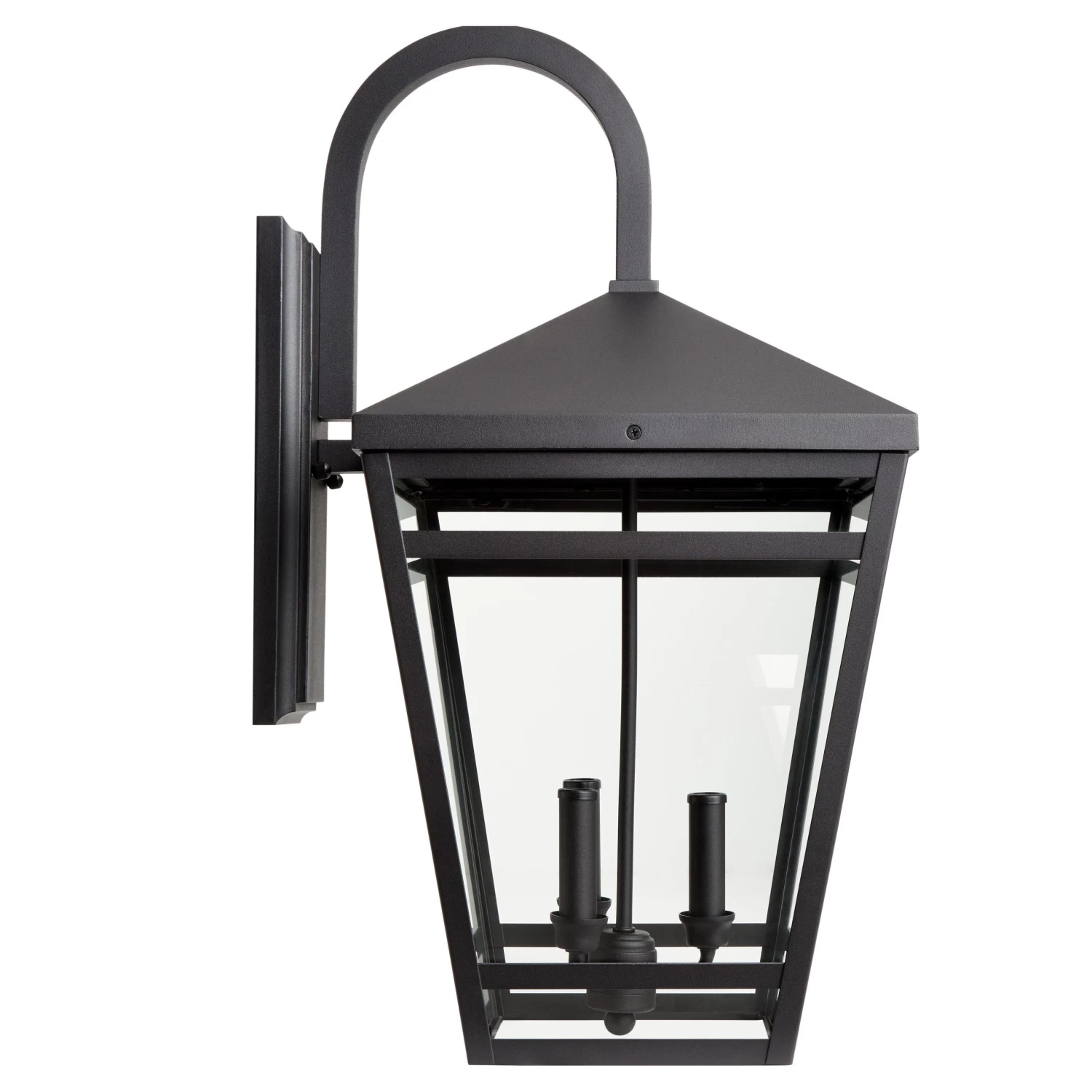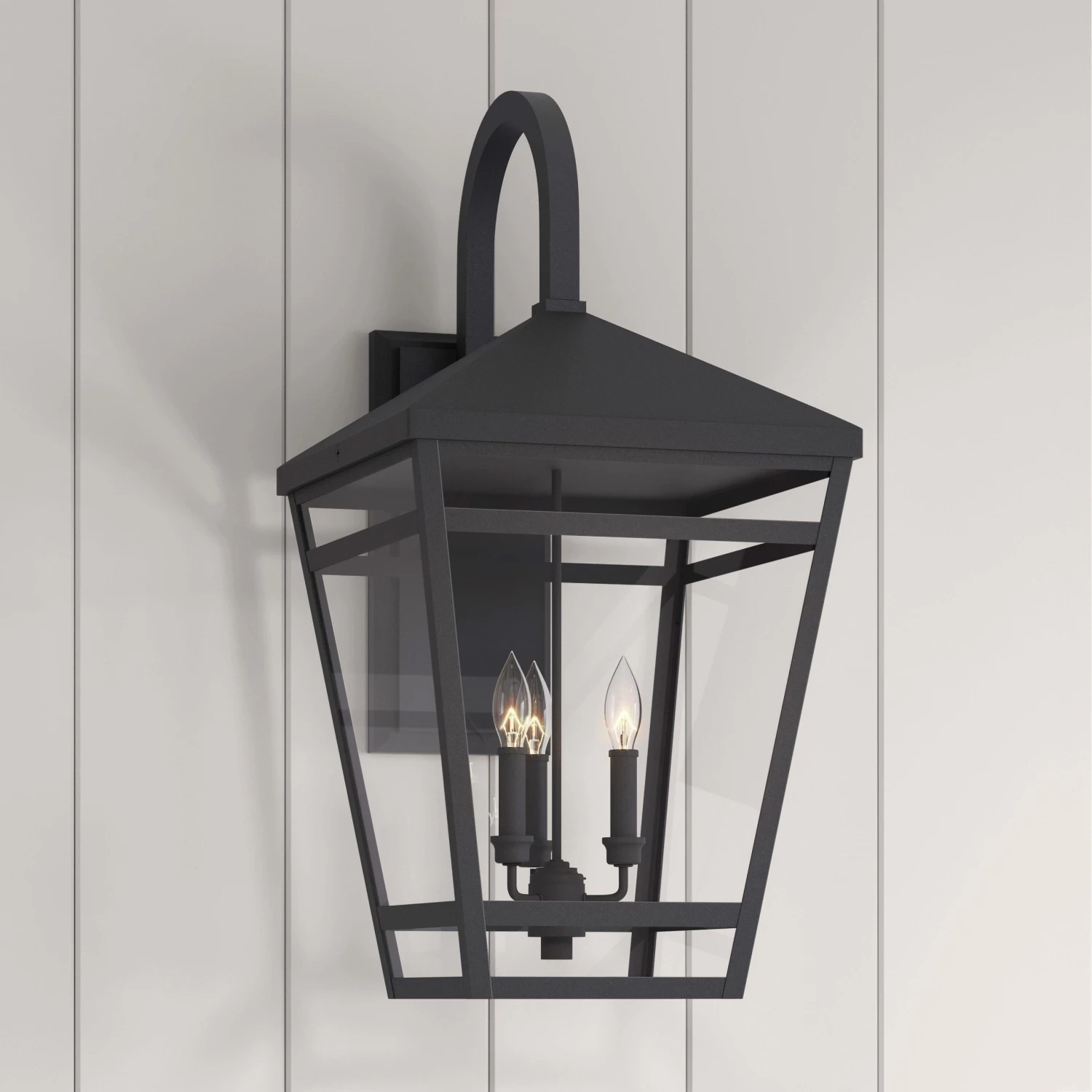 The Edgehill 3-Light Outdoor Entrance Wall Sconce takes inspiration from traditional carriage lanterns. Unrestricted light shines through open framework and large, clear glass panes. This understated black aluminum fixture finds home in both traditional and transitional styles. Mounting hardware is included for easy installation.
