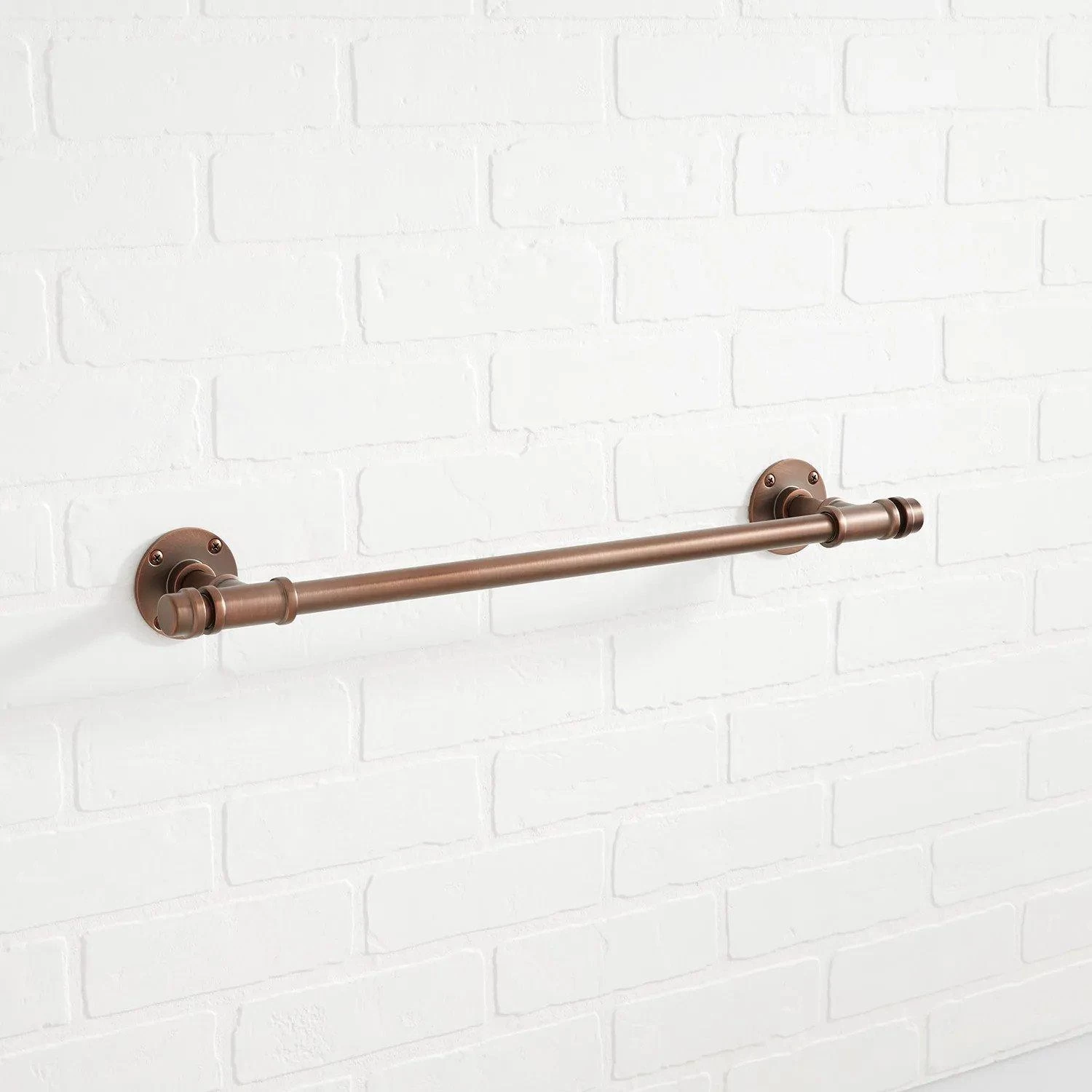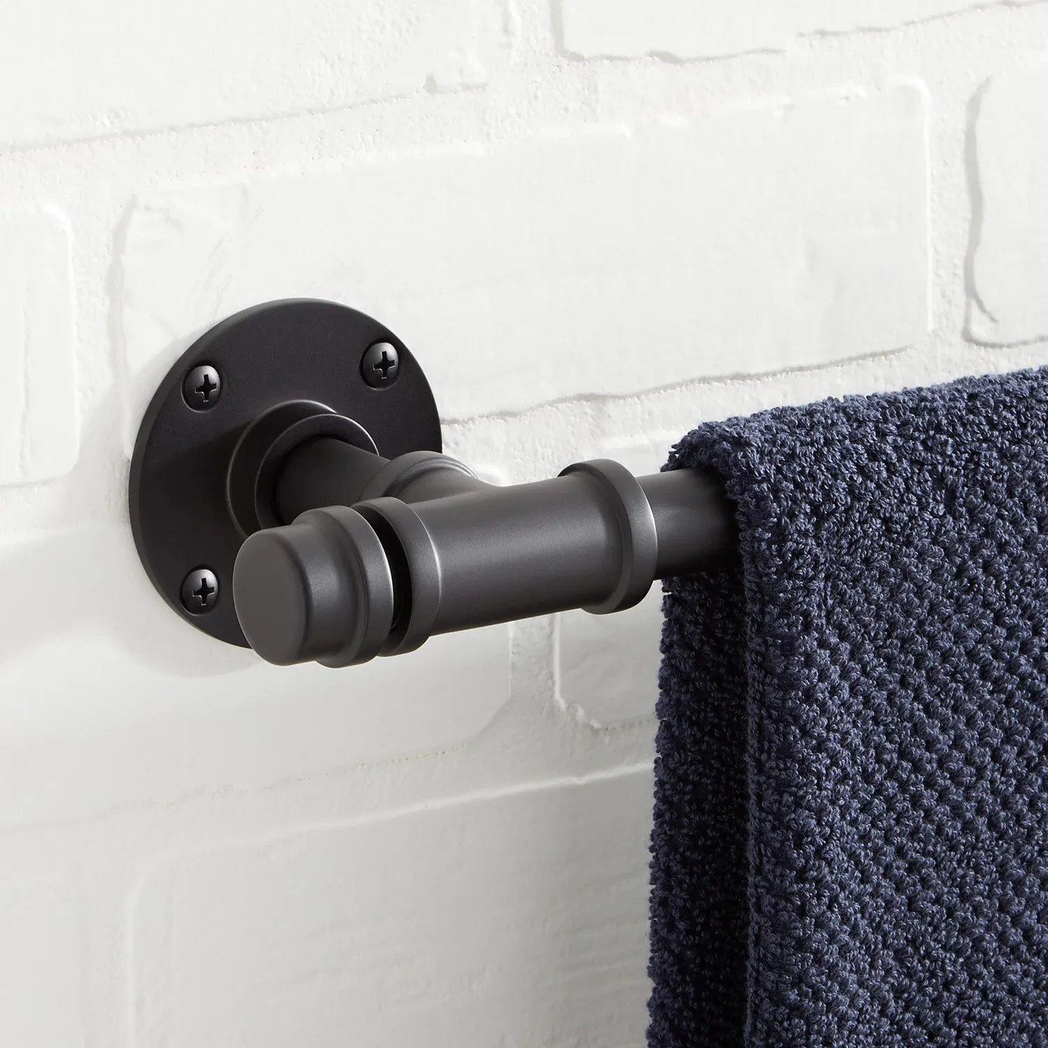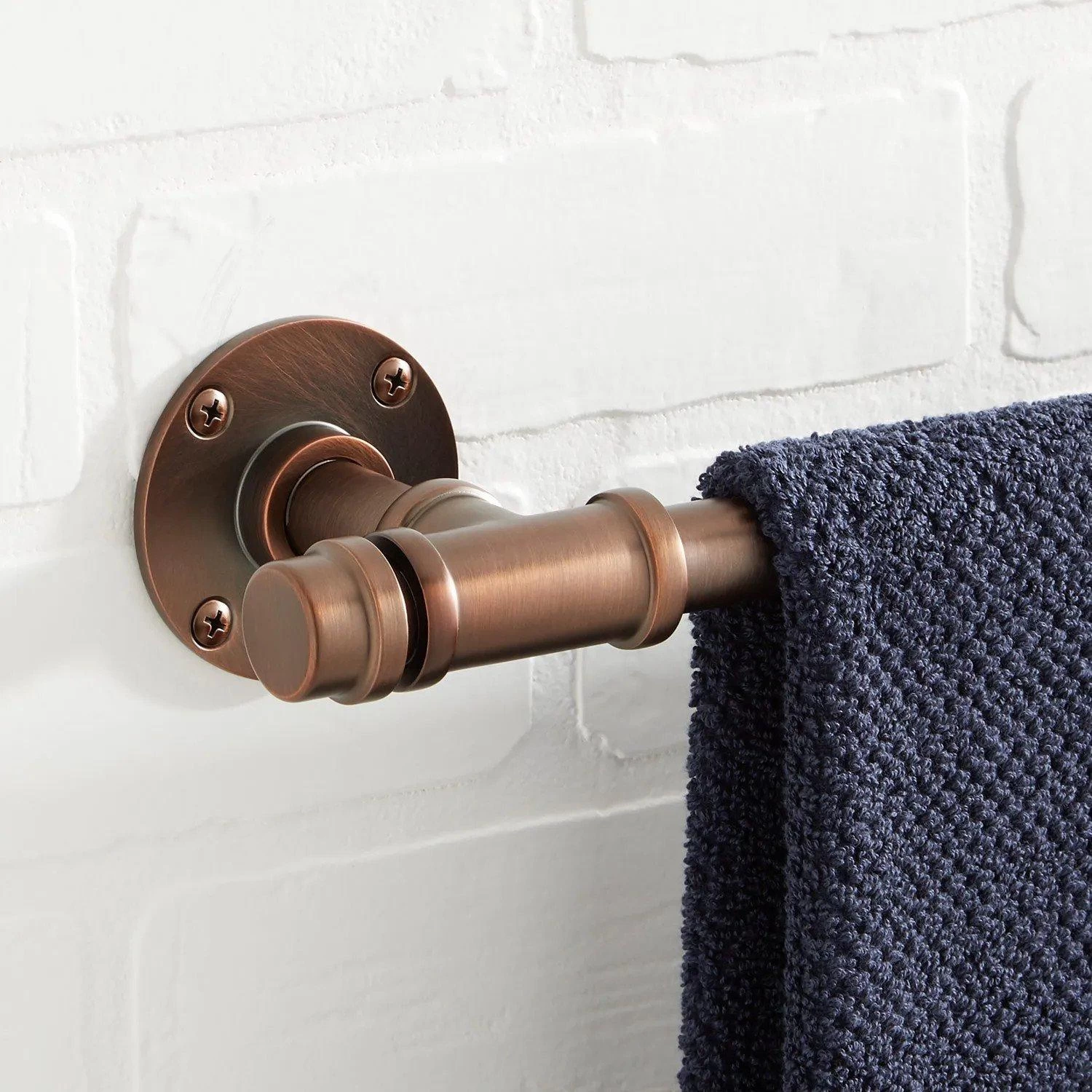 Change the look of your bathroom with the Edison Towel Bar. An assortment of plumbing fittings is artfully assembled to create this industrial-inspired bath accessory. Made of solid brass that features a corrosion-resistant finish, the Edison is suited for a wet environment and will be a lasting addition to your space. Matching mounting screws are included for easy installation.