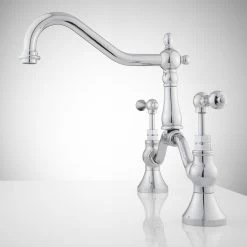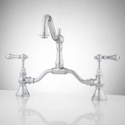 Perfect as the standout fixture in your bathroom, the Elnora Bridge Bathroom Faucet features a tall spout and lever handles. Made of solid brass, this bridge faucet also features wide 12″ centers.