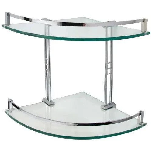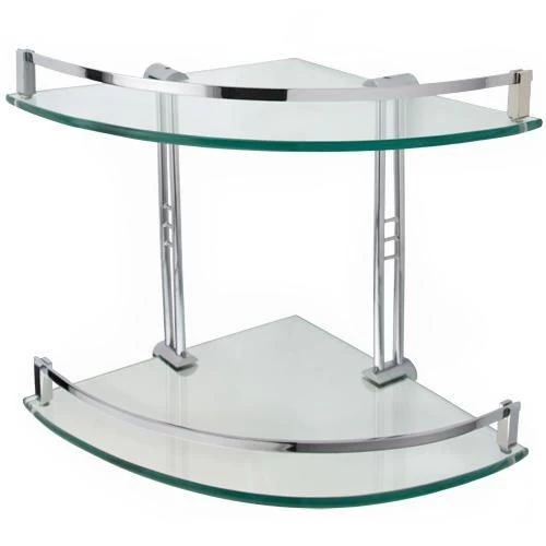 The Engel Tempered Glass Corner Shelf features two shelves and a decorative solid brass railing that serves to help prevent toiletries from falling. This shelf is the perfect choice when trying to make the most of your bathroom space.