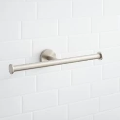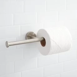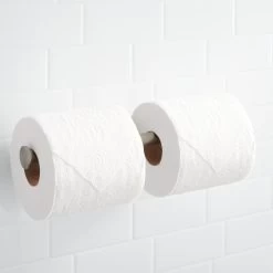 Keep two rolls of toilet paper handy with the Exira Dual Holder. A great choice for a guest bathroom or hotel suite, this product is made of brass and features a corrosion-resistant finish to complement existing decor. Mounts using concealed hardware.