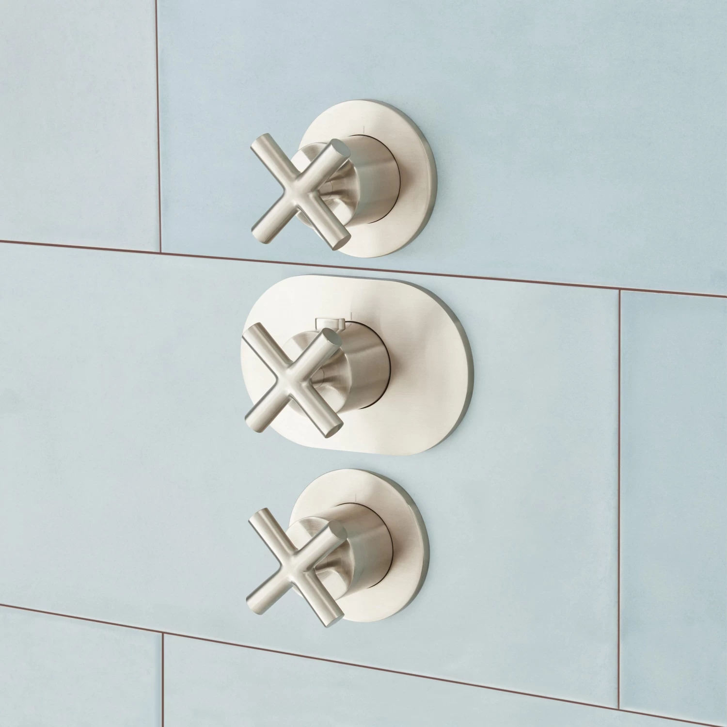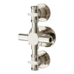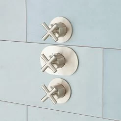 - 2-way diverter features 1/2″ IPS inlets, and controls water flow between 2 shower outlets.