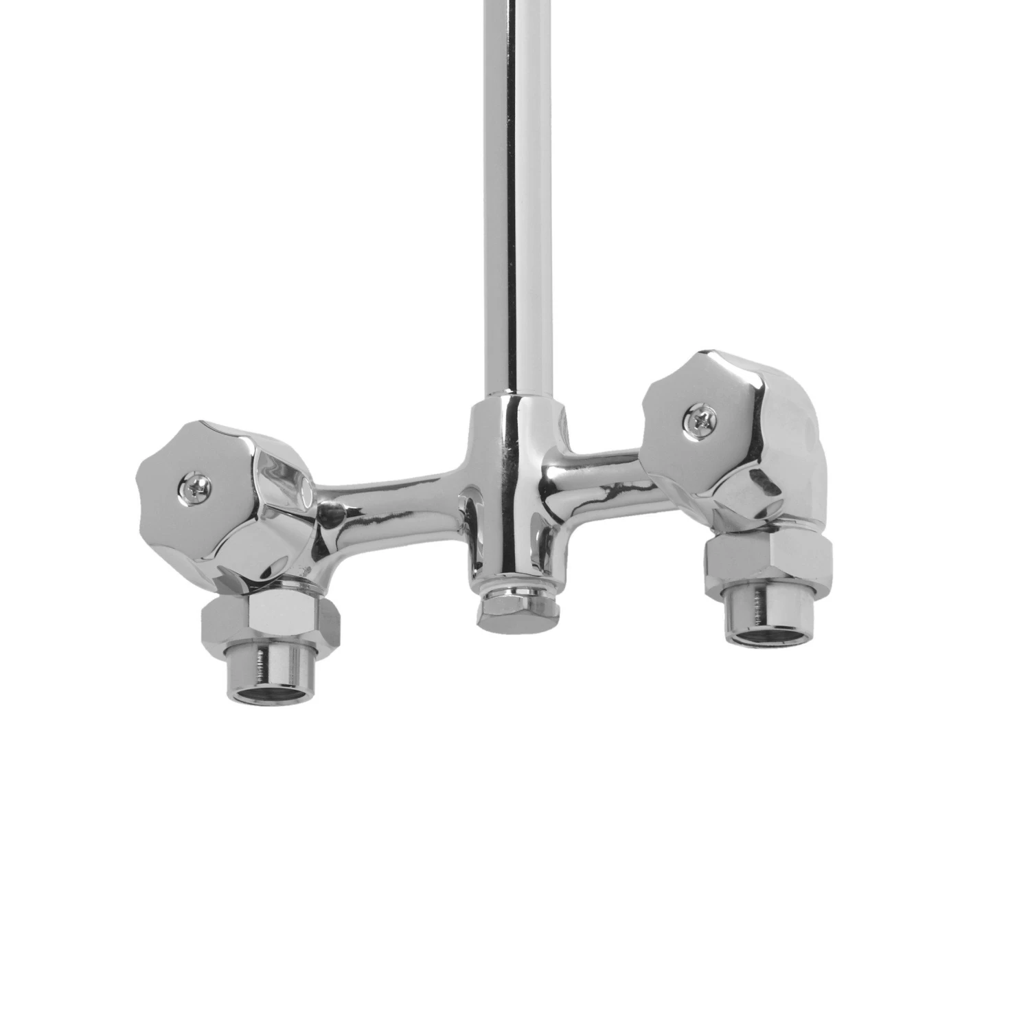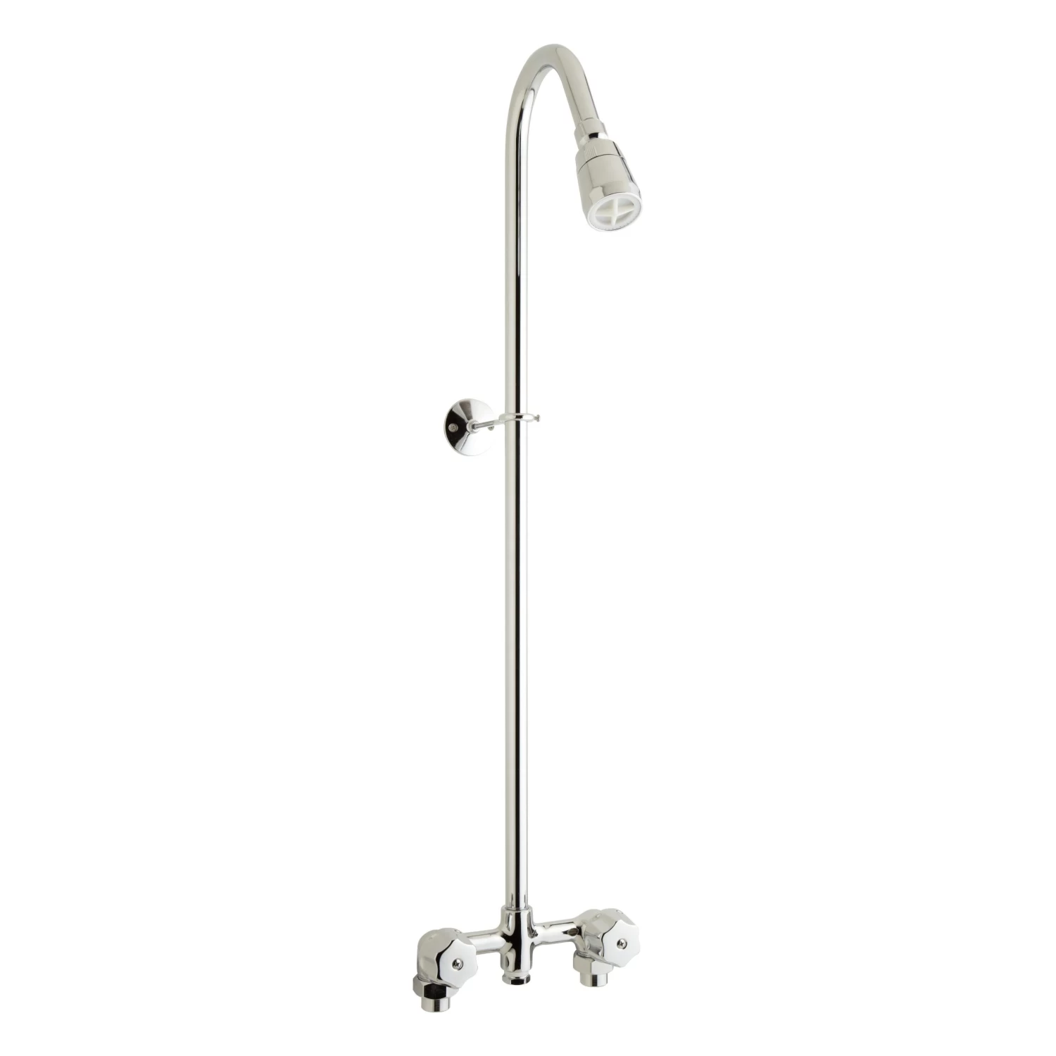 This exposed two valve shower features a solid brass body with an ABS showerhead. Perfect for an outdoor shower.