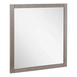 Add the finishing touch to your bathroom remodel with the Fallbrook Vanity Mirror. Made of wood with an ash brown finish, this is the perfect piece to hang above a matching bathroom cabinet.