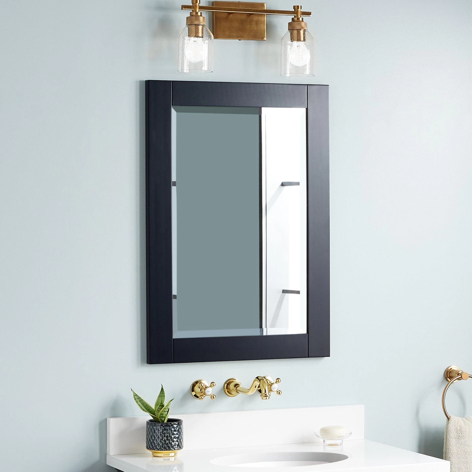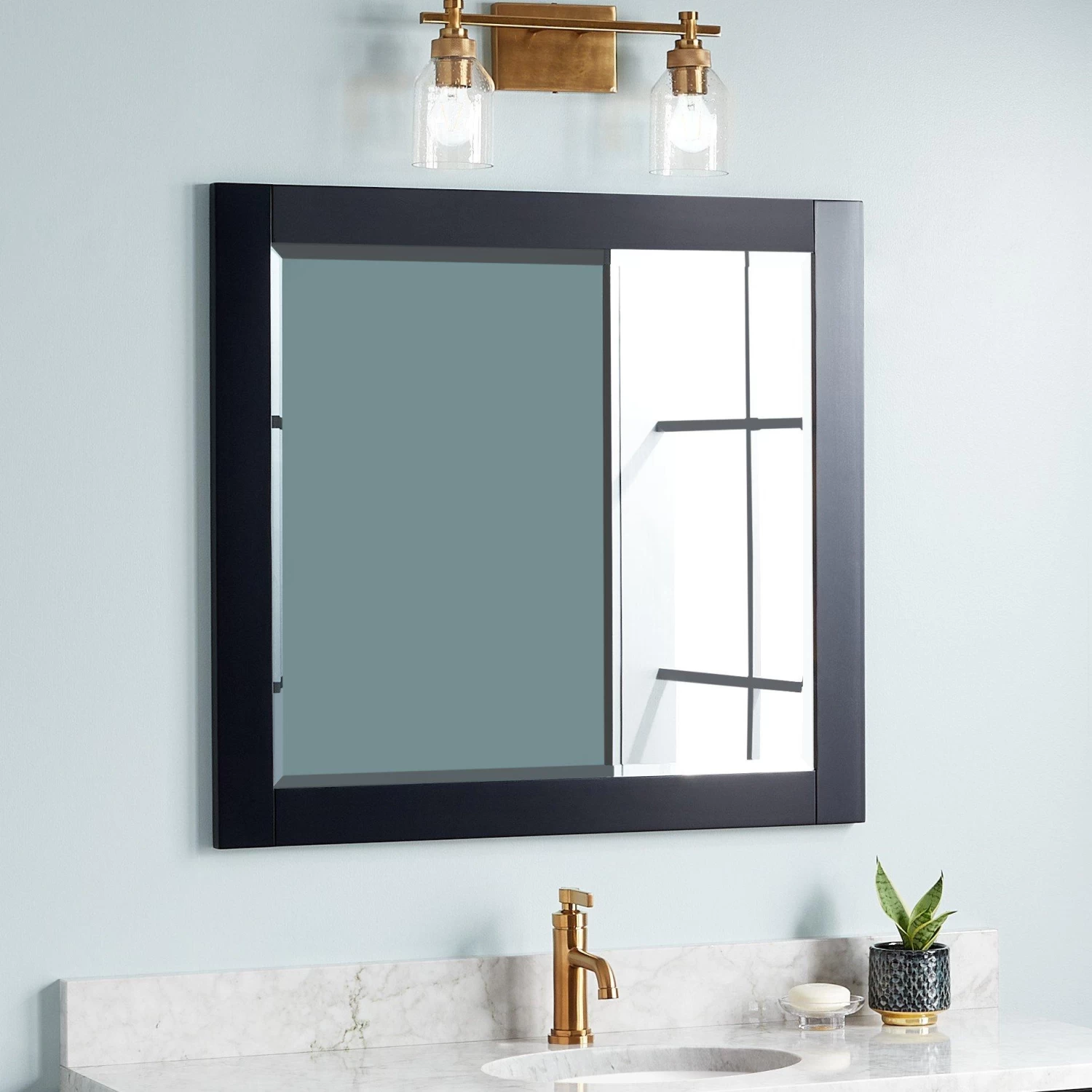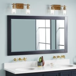 For a piece that adds sophistication to your space, complete your remodel with the Fallbrook Vanity Mirror. Finished in a midnight navy blue, the rectangular wood frame is both stylish and durable. Mounting hardware is included.
