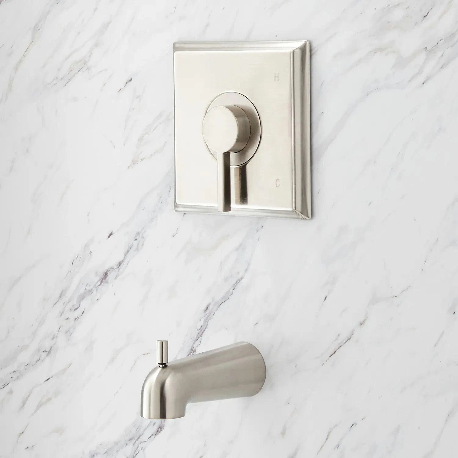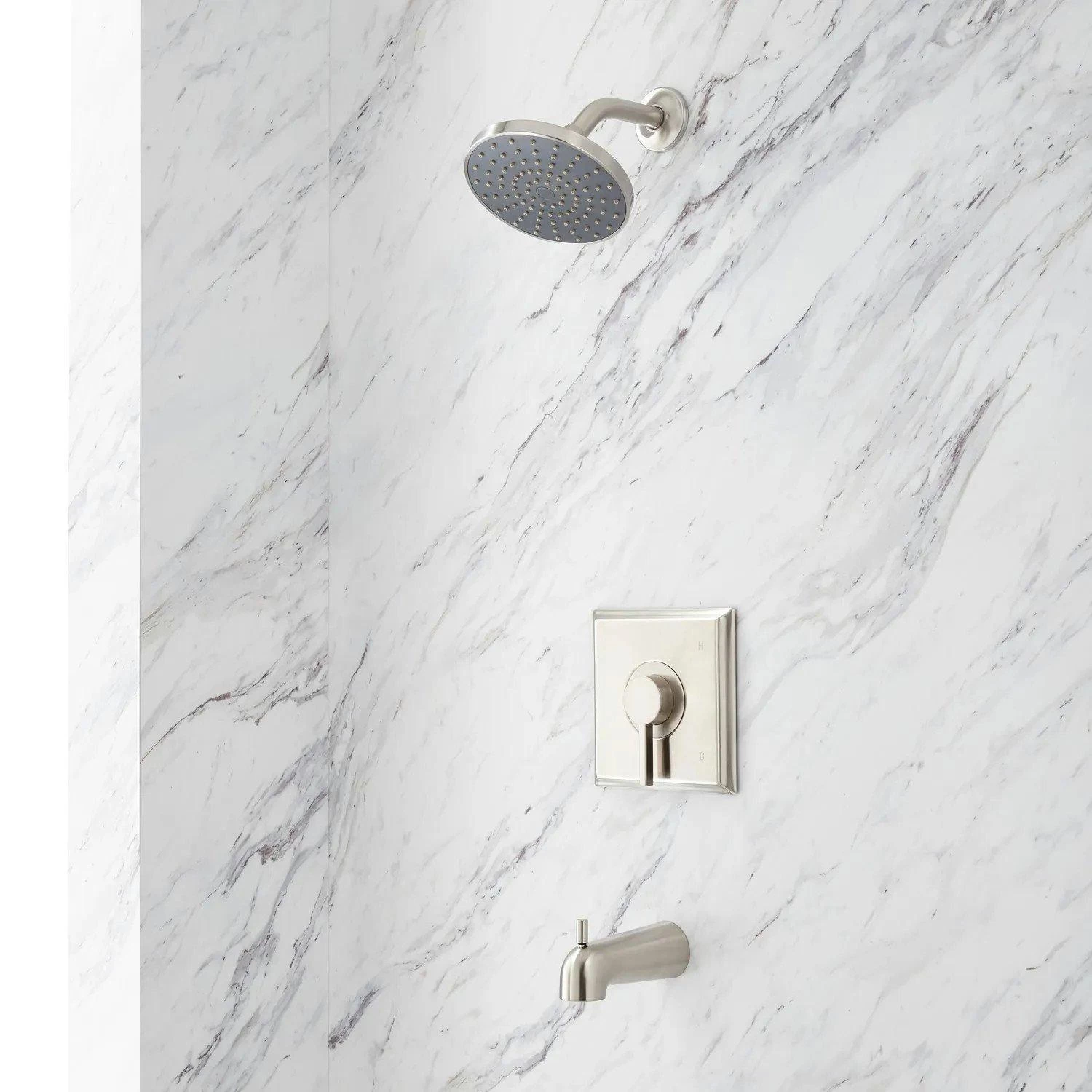Create an instant update to any bathroom with the modern Flair Pressure Balance Tub and Shower Faucet. Enjoy a rainfall like shower experience and easily control water flow and temperature through its single lever handle.