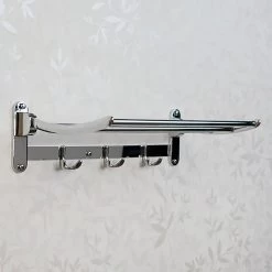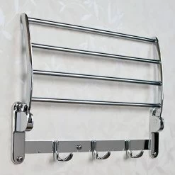 The Solid Brass Folding Towel Rack will instantly add storage space to any size bathroom. Made of solid brass, this towel rack can fold upward when not in use and features three sets of double hooks for ultimate storage.
