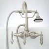 - Includes faucet, deck-mount couplers, hand shower and cradle.