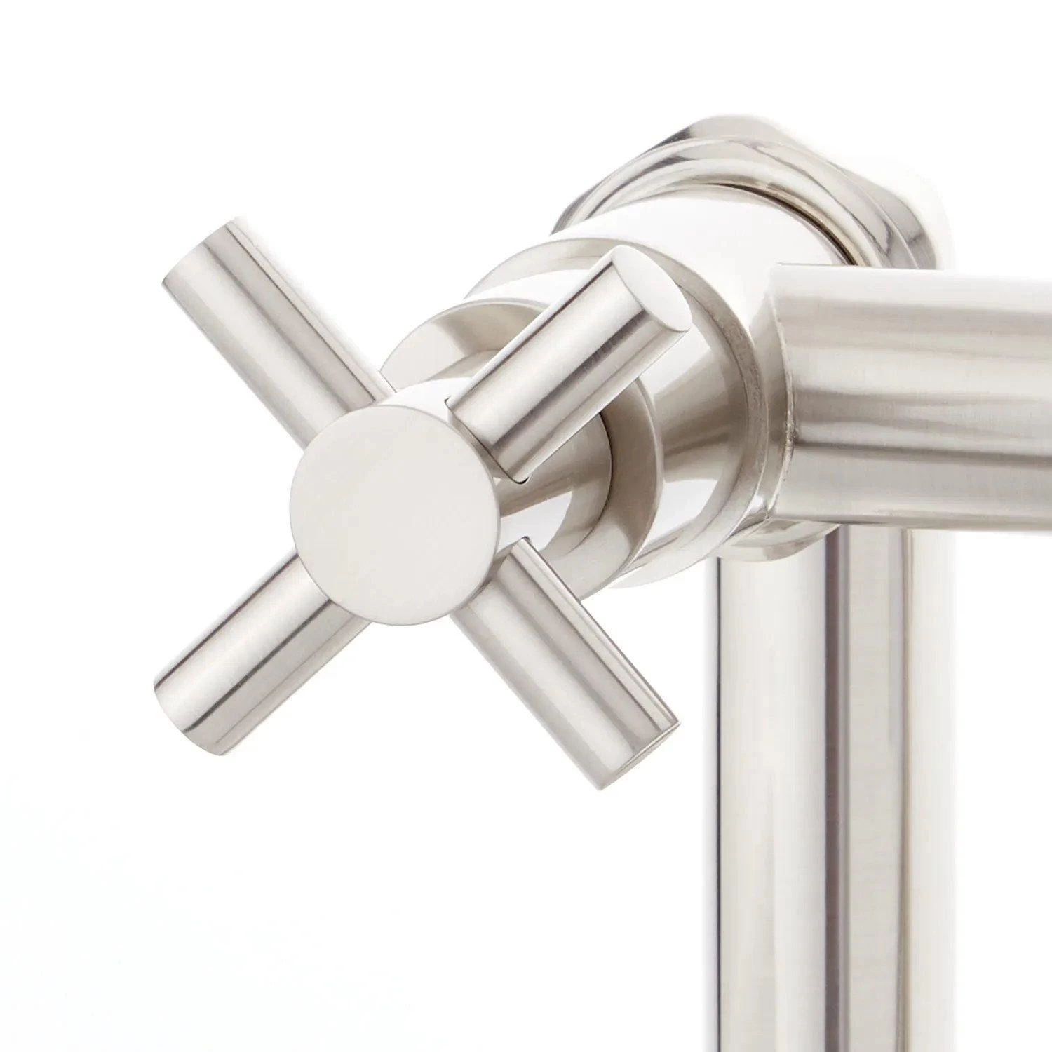 Elevate the look of your bathroom with the Gervaise Deck-Mount Tub Faucet. Modern in design, this piece features sleek cross handles to control the water volume and temperature. Additionally, the Gervaise is a durable option that prioritizes accessibility. Complete with a hand shower, it includes a flexible metal hose that extends to reach tough places for easy rinsing.