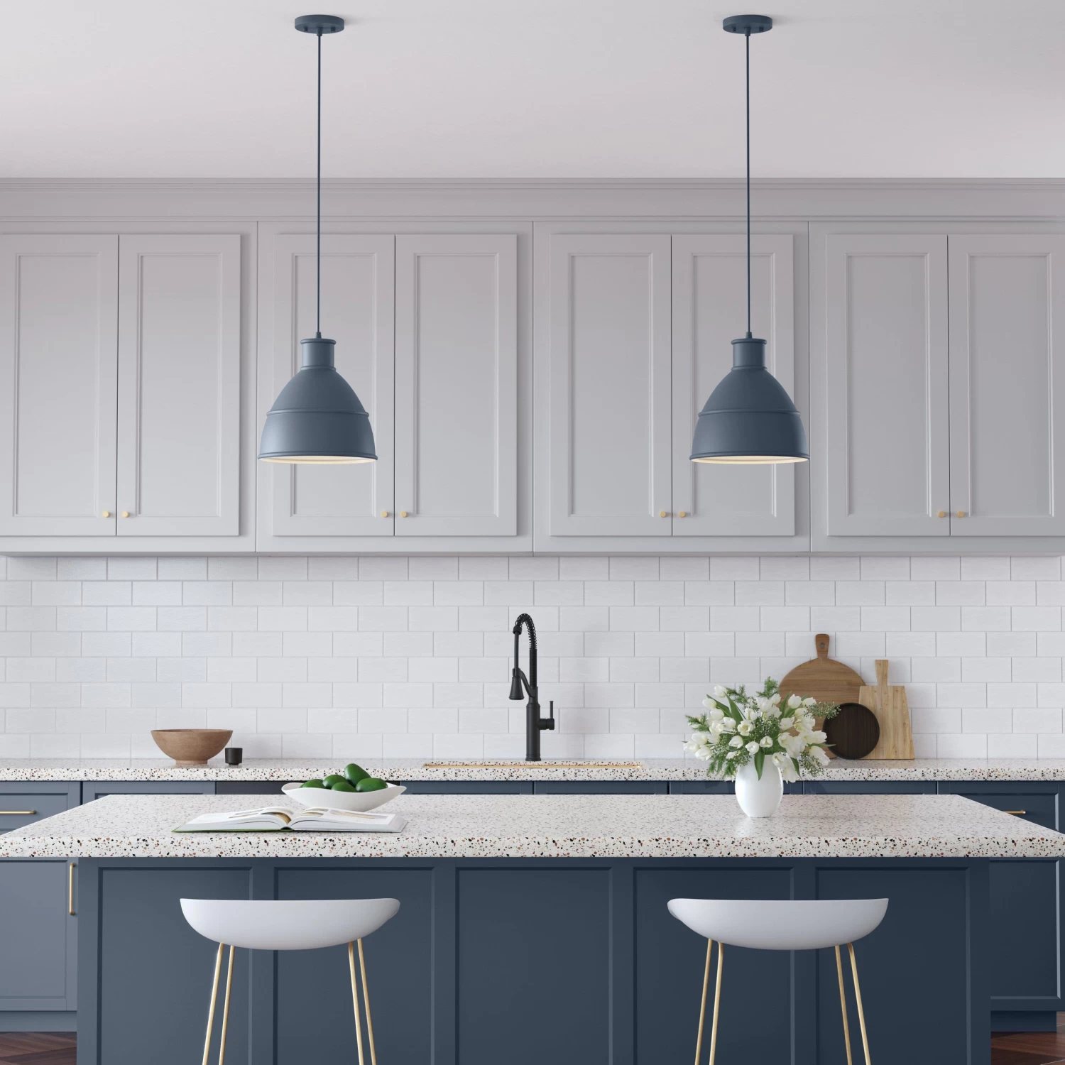 Give your space an industrial edge with the Glencroft Pendant. A matte storm blue finish adorns this exposed steel fixture, bringing a factory-inspired look that adds depth to any room. Hang above small areas for the perfect directional lighting solution or use in multiples for a true warehouse effect. For easy installation, all necessary hardware is included.