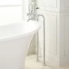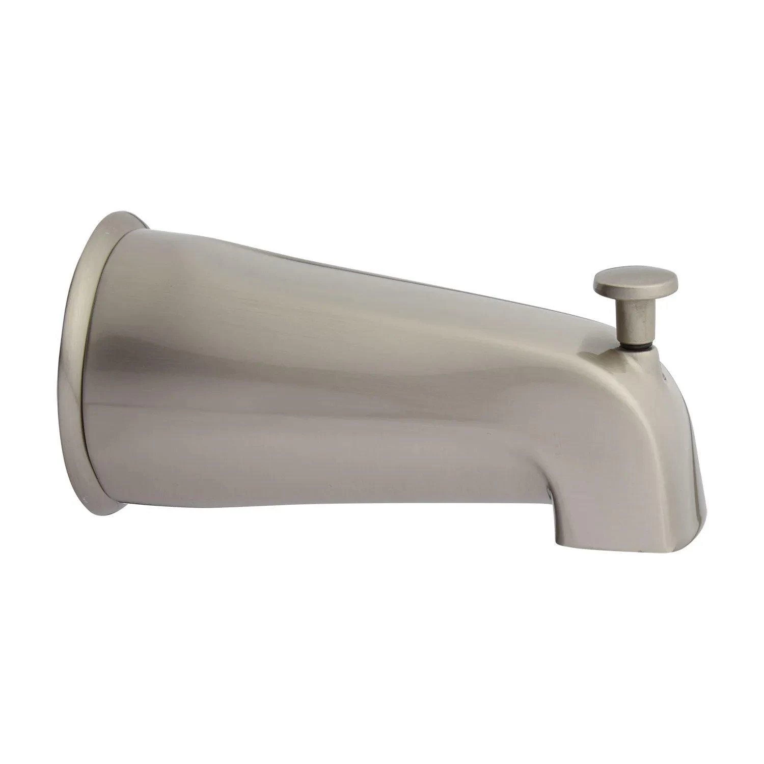 Designed for use with tub and shower systems, the versatile Glenley Tub Spout sports a round base and round built-in nose diverter. This spout features durable construction and an easy-going design that easily complements traditional or modern decor styles.