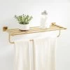 Featuring durable cast iron and tempered glass, the Gothic Collection Glass Shelf with Towel Bar is great choice for a bathroom. This multifunctioning piece provides more storage and organization for bath accessories.