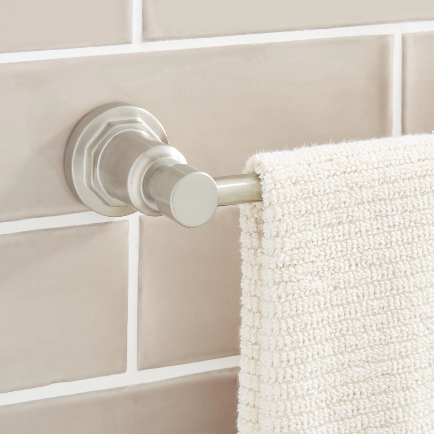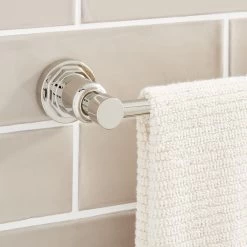 Featuring sleek details, the Greyfield Towel Bar is perfect for a contemporary bathroom design. Easy to install, this product will quickly change the appearance of your bathroom. Mounting hardware is included for easy installation.