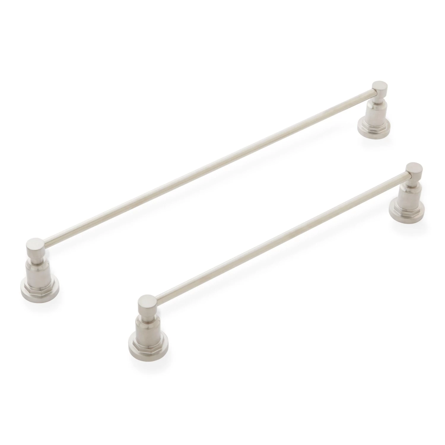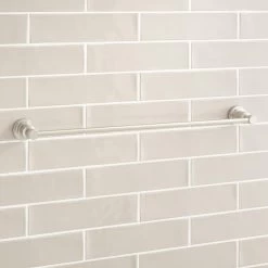- 24″ towel bar has a towel holder length of 23″. Overall Dimensions: 26″ L x 3-3/8″ W x 2″ H.