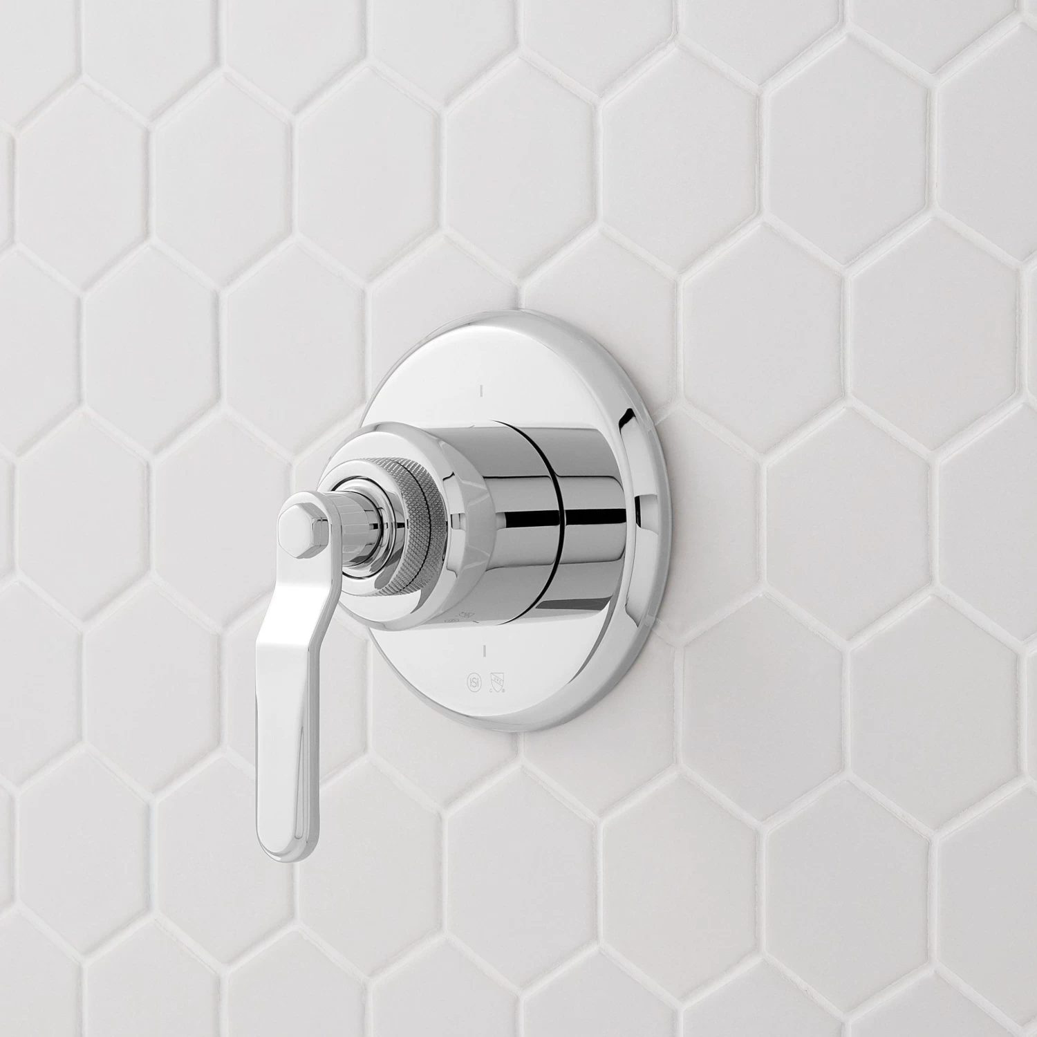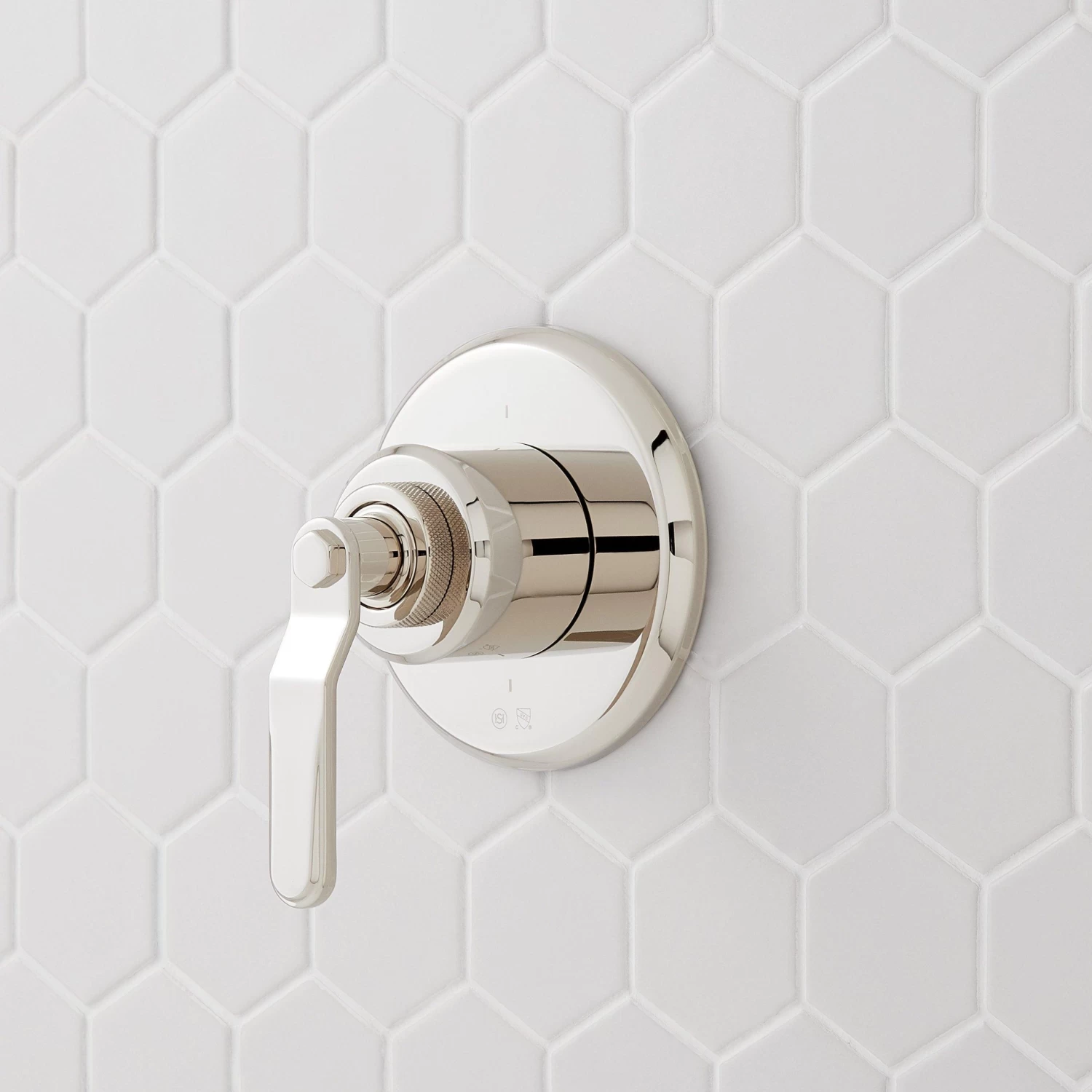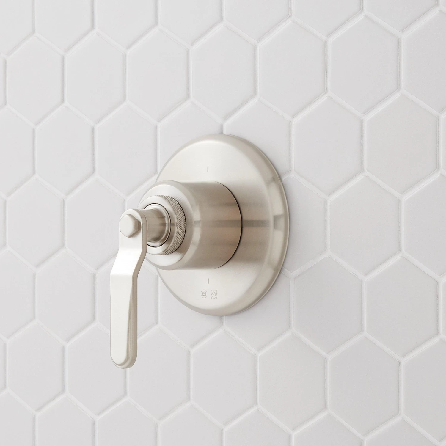 Complete with knurled detailing and industrial-inspired embellishments, the Gunther In-Wall Shower Diverter Trim gives your bathroom a streamlined upgrade. Its lever design makes it easy to navigate its functions while its durable build ensures years of use. Select your favorite finish to match existing decor.