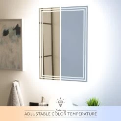 Complete your bathroom update with the Harrington LED Lighted Mirror. Controlled by a touch sensor that allows you to tune color temperature, its ambient lighting switches from warm to cool for precise shaving or makeup application. Energy efficient and easy to operate, the Harrington is the perfect accent for your home.