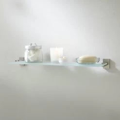 The Helsinki Collection Tempered Glass Shelf adds stylish storage for your bath accessories. The sleek contemporary lines of this frosted glass shelf are an instant update for any decor.