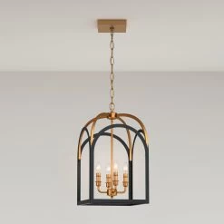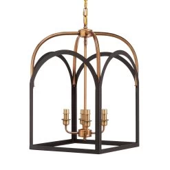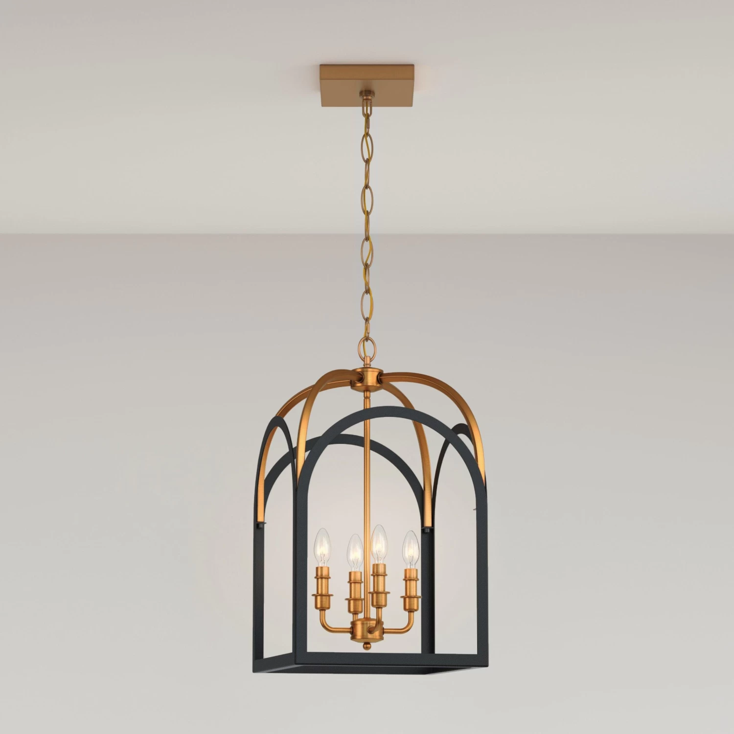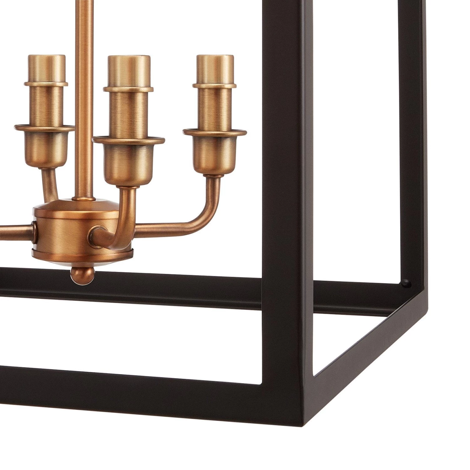 Boasting a two-tone, lantern-style cage, the Henrico Pendant Chandelier is the perfect statement pipece for your foyer or dining room. Its eye-catching design is made up of square metal tubes that come together to form a stylish work of art. Four candelabra light bulbs sit inside of the cage, which suspends from the ceiling by a sturdy linked chain. Mounting hardware is included for easy installation.