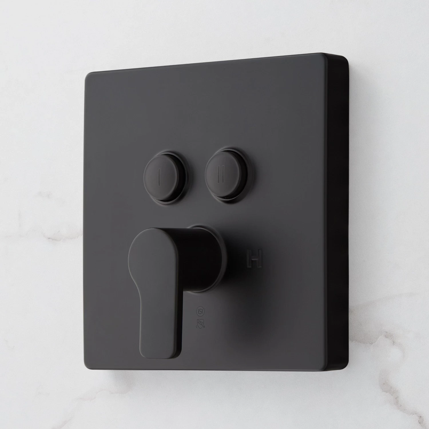 Start your custom shower project with the Hibiscus Simple Select 2-Way Valve. Featuring a contemporary design and modern technology, this product allows you to seamlessly switch between two functions at the push of a button, or use both simultaneously. Its pressure balancing ability ensures the water temperature and pressure remains constant while in use, promising a pleasurable experience each time. Made of brass and plated with a tarnish-resistant finish, the Hibiscus has the high-quality build to match its looks.