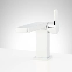 Add a fresh finishing touch to your modern bathroom courtesy of the Hibiscus Single-Hole Faucet. This striking fixture stands out for its clean lines and smooth finish. Adjust the temperature easily with the conveniently positioned side lever. A dynamic wide-mouth spout contributes to the contemporary look. Constructed of brass, it’s as enduring as it is eye-catching. A matching sink drain is included.