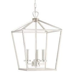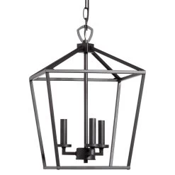 Classic elegance defines the Hillpoint 3-Light Pendant Chandelier. The clean frame-like design provides ample, unobstructed lighting from its center arrangement of candelabra bulbs. Constructed of durable steel and suspended by chain link, this fixture will hang safely from above. Mounting hardware is included for easy installation.