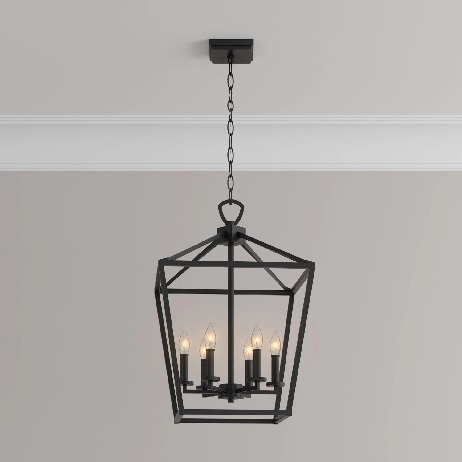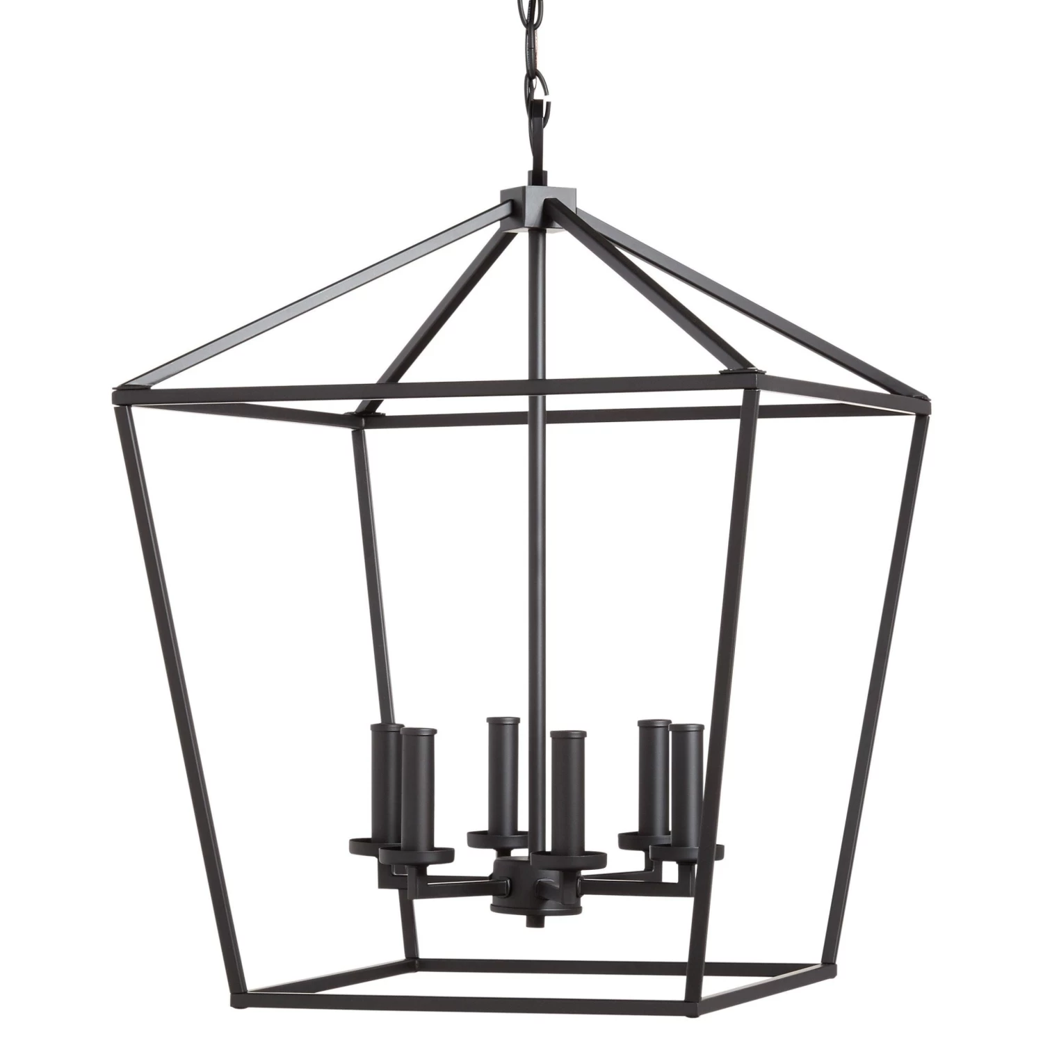The Hillpoint 6-Light Pendant Chandelier displays a timeless look that will add elegance to your home. The clean frame-like design provides ample, unobstructed lighting from its center arrangement of candelabra bulbs. Constructed of durable steel and suspended by chain link, this fixture will hang safely from above. Mounting hardware is included for easy installation.