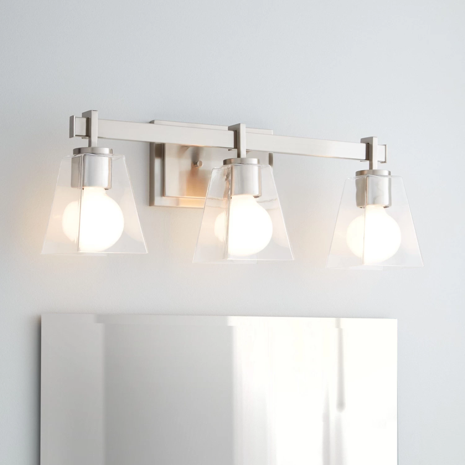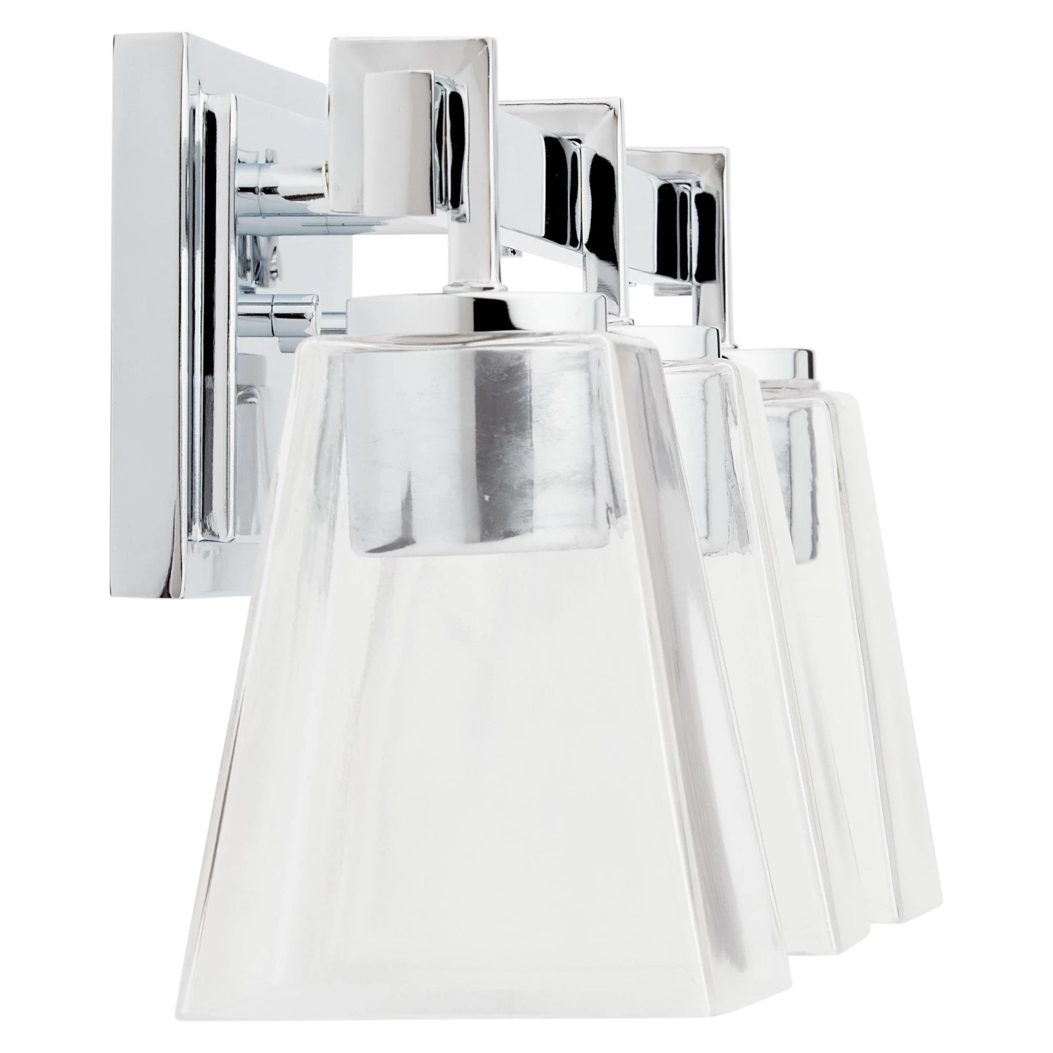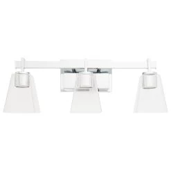 The Hoxton Vanity Light has a sleek design that is ideal for a modern space. The build uses a mix of glass and metal to complement sleek fixtures. The shades are made of clear glass to cast an effective light throughout your vanity area.