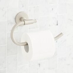 The Kilburn Toilet Paper Holder is the perfect finishing touch for your modern bathroom. Fit with a chic open-ended design, it easily allows you to change rolls with little effort. Made of brass and available in your choice of finish, this piece is sure to complement your space for years to come. Mounting hardware is included for easy installation.