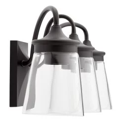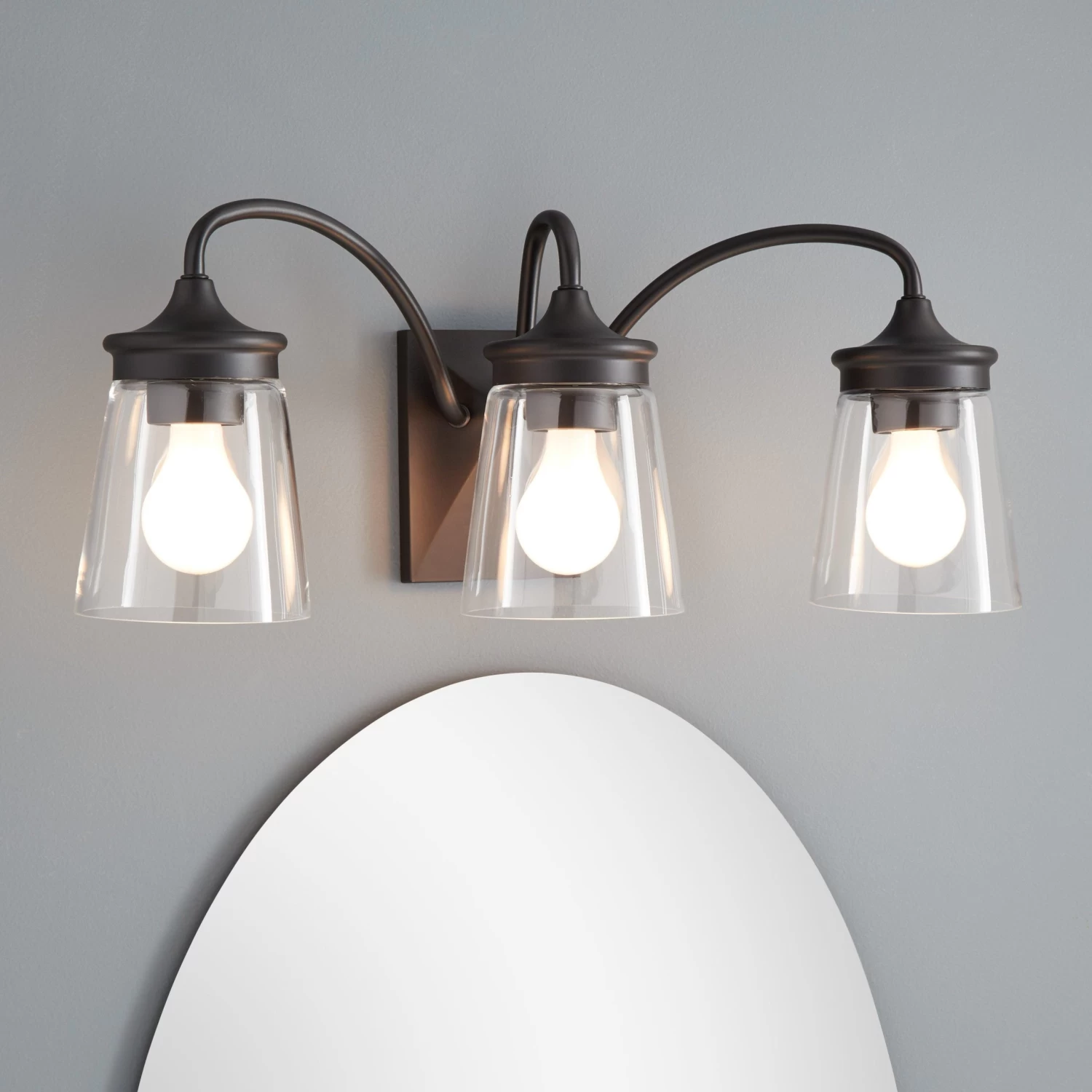 Sort your lighting needs easily with the La Maida 3-Light Vanity Light. An exceptional choice for brightening up a bathroom, this eye-catching piece is available in a variety of finishes that add timeless beauty to the home. Curved steel provides reliable support for a trio of clear glass shades. Perfect for adding true, bright light to the room, this fixture exudes a sense of modern-day charm with a hint of old-world inspiration.