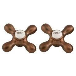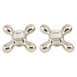 These replacement large metal porcelain cross handles are marked hot and cold with the traditional antique flair. They are sold as a pair and come in several metal finishes. They are specifically made for certain faucets.