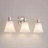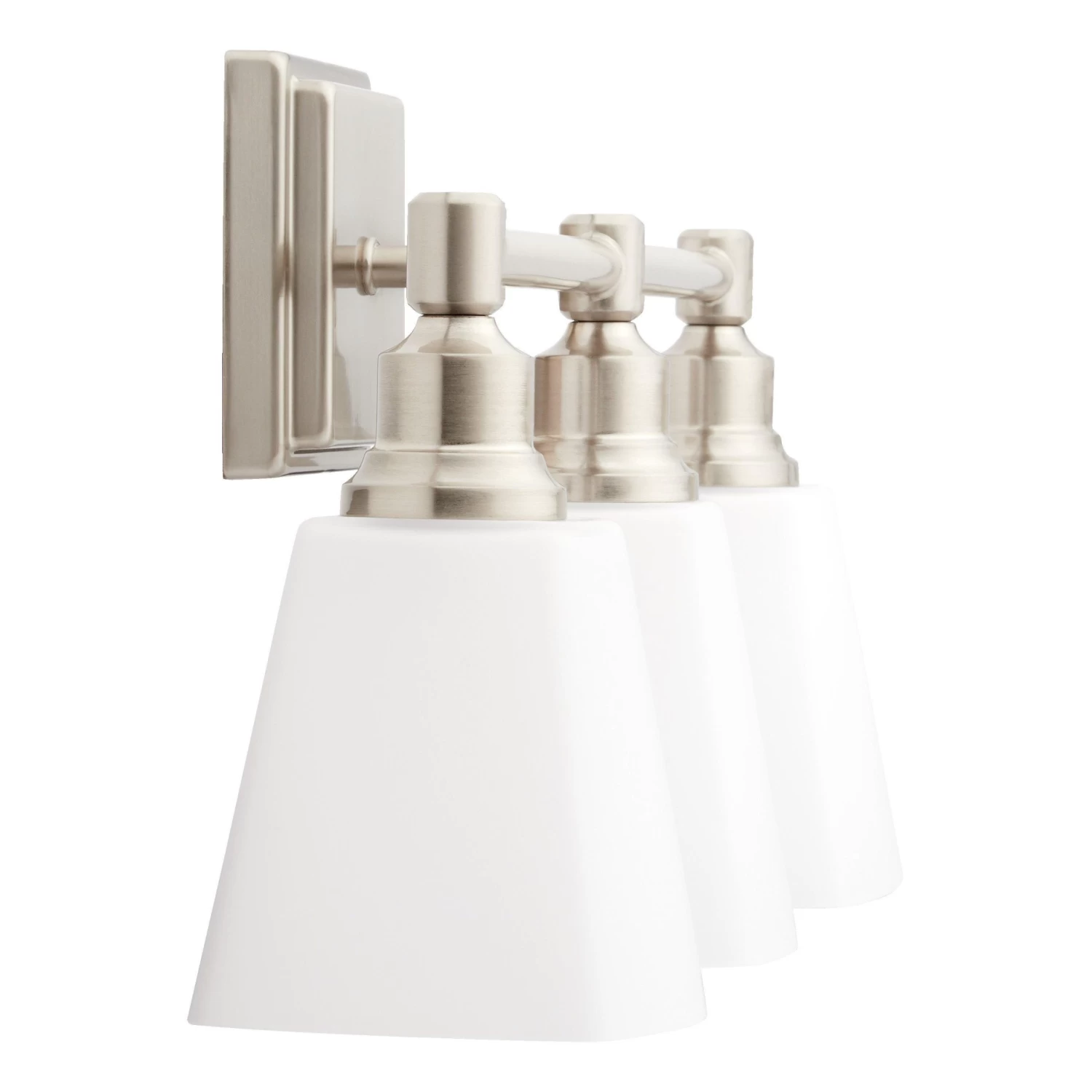 For warm, elegant lighting in your bathroom, the Leadwell 3-Light Vanity Light makes the perfect addition. Featuring a trio of opal-etched glass shades, this fixture has crisp, clean lines that offer a sense of no-fuss modernity. It’s ideal if you want to add an updated element without imposing on other features in the room. Available in a variety of finishes, this piece will easily bring the perfect finishing touch to the space.