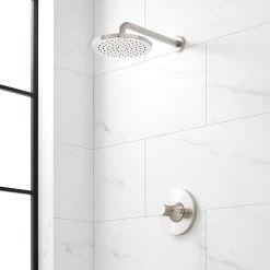 Instantly elevate your bathroom with the Lentz Pressure Balance Shower System. Featuring a modern and minimalistic shape, this streamlined fixture carries equal parts quality and style. Made of brass, its durable rust and corrosion-resistant build boasts a knob handle with knurling, which provides visual texture as well as added grip. Choose between a rough-in valve system or an exterior set. Available in a variety of finishes, the Lentz highlights all decor styles.