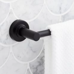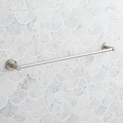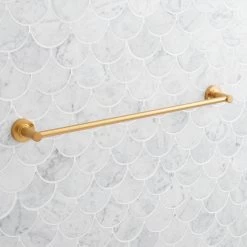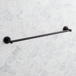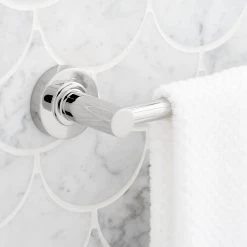 - 24″ towel bar has a towel holder length of 24″. Overall Dimensions: 26″ L x 2-3/16″ W x 3″ H.