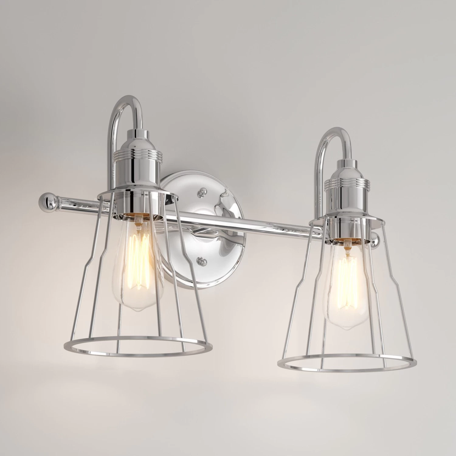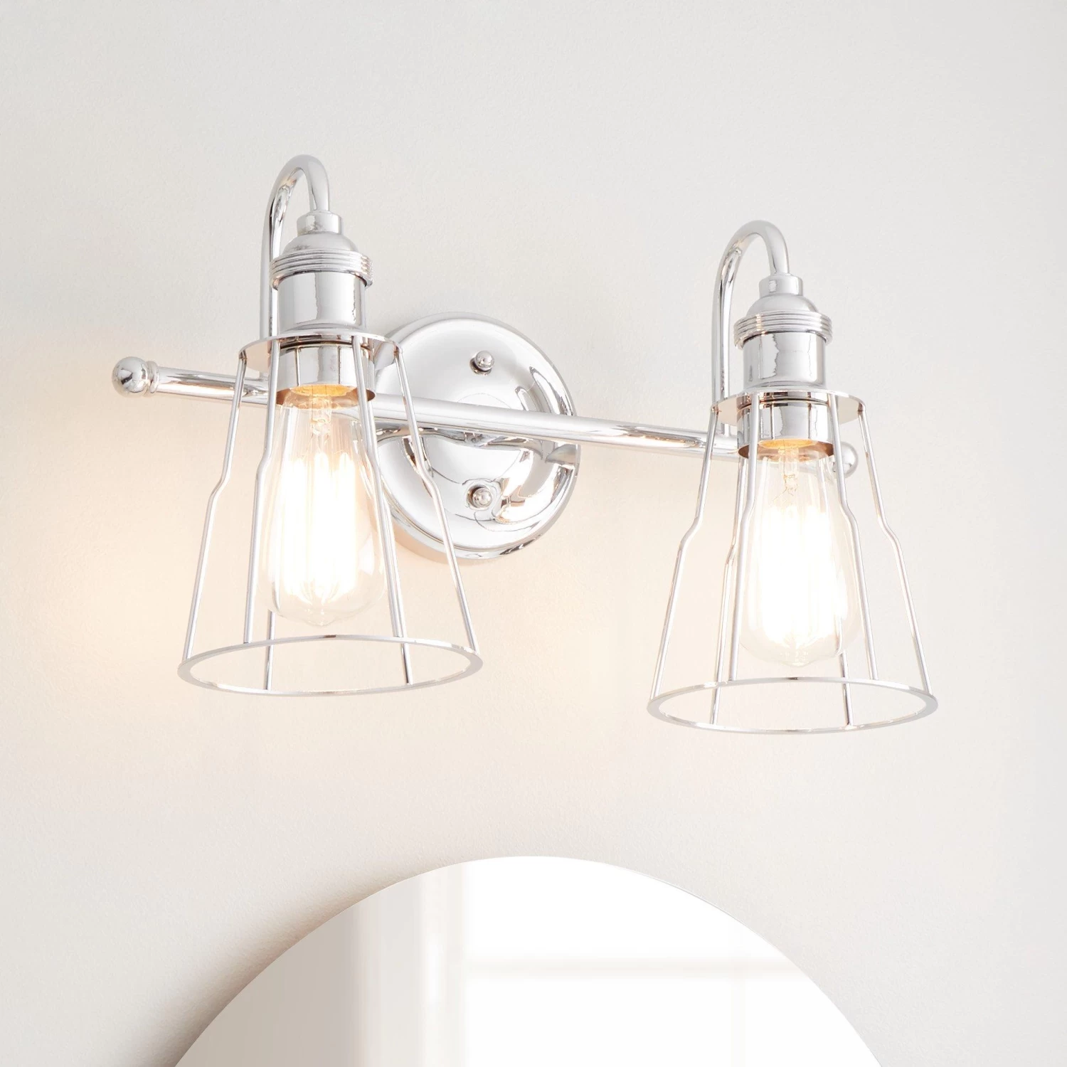 The Magruder 2-Light Vanity Light is a lovely addition to any rustic or modern farmhouse bath. Polished chrome wire frames and a round backplate take inspiration from vintage-industrial lighting, perfect for the final touch of your renovation. Mounting hardware is included for easy installation.
