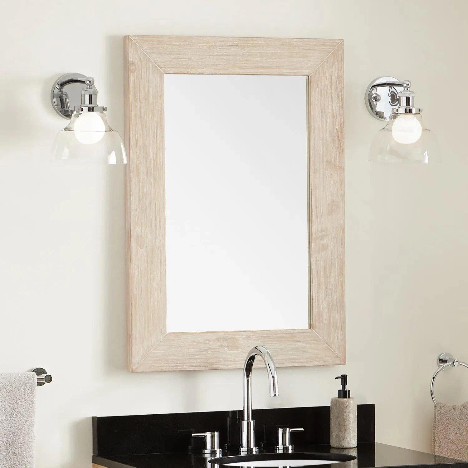 Finish your chic bathroom remodel with the Maysville Vanity Mirror. The frame is made of pine, offering the durability needed for lasting use. A whitewash pine finish gives this mirror a distressed look, which will bring an organic feel to your space.