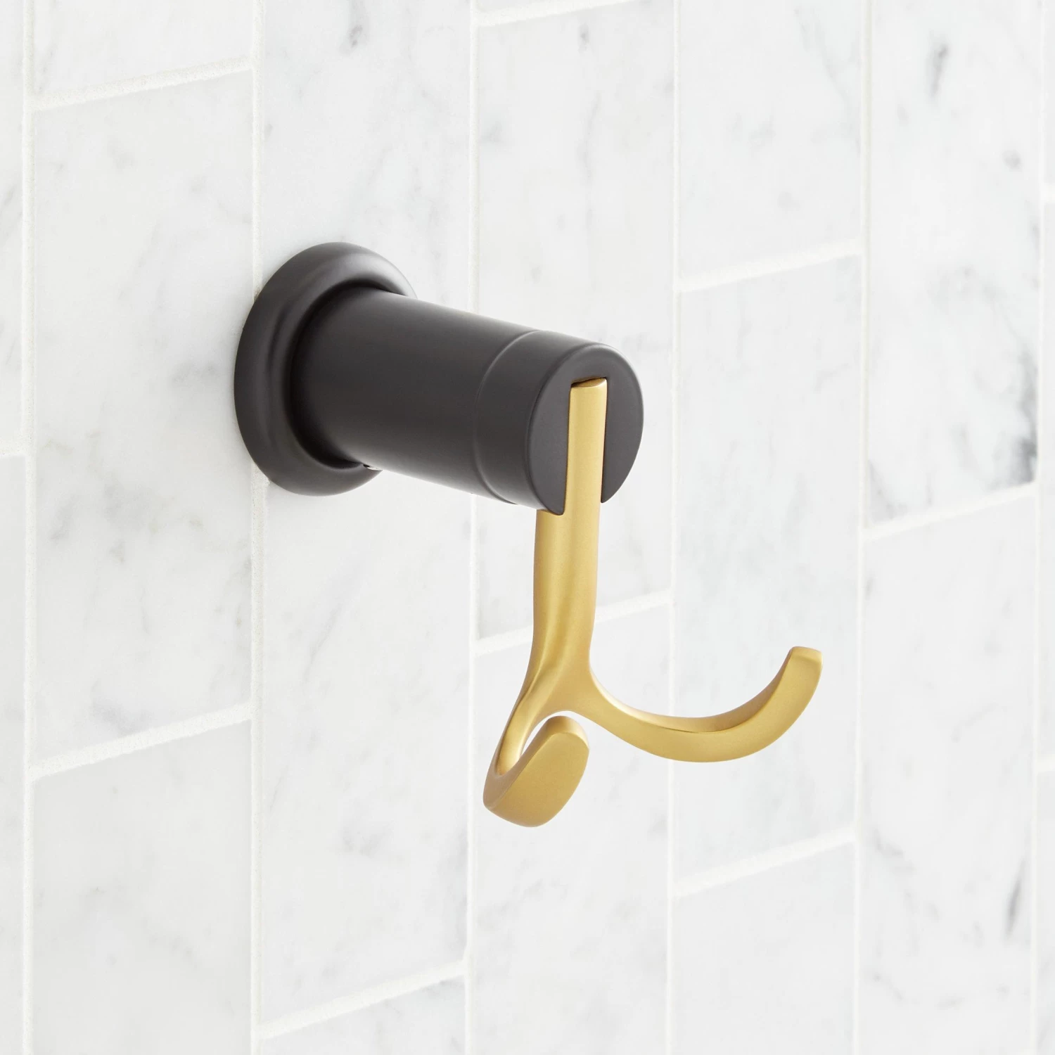 Add a luxurious touch to your bathroom with the Mendi Brass Robe Hook. Choose from a variety of finishes to match your existing decor, or pair with other accessories from the Mendi Collection to complete the look. Mounting hardware is included for easy installation.