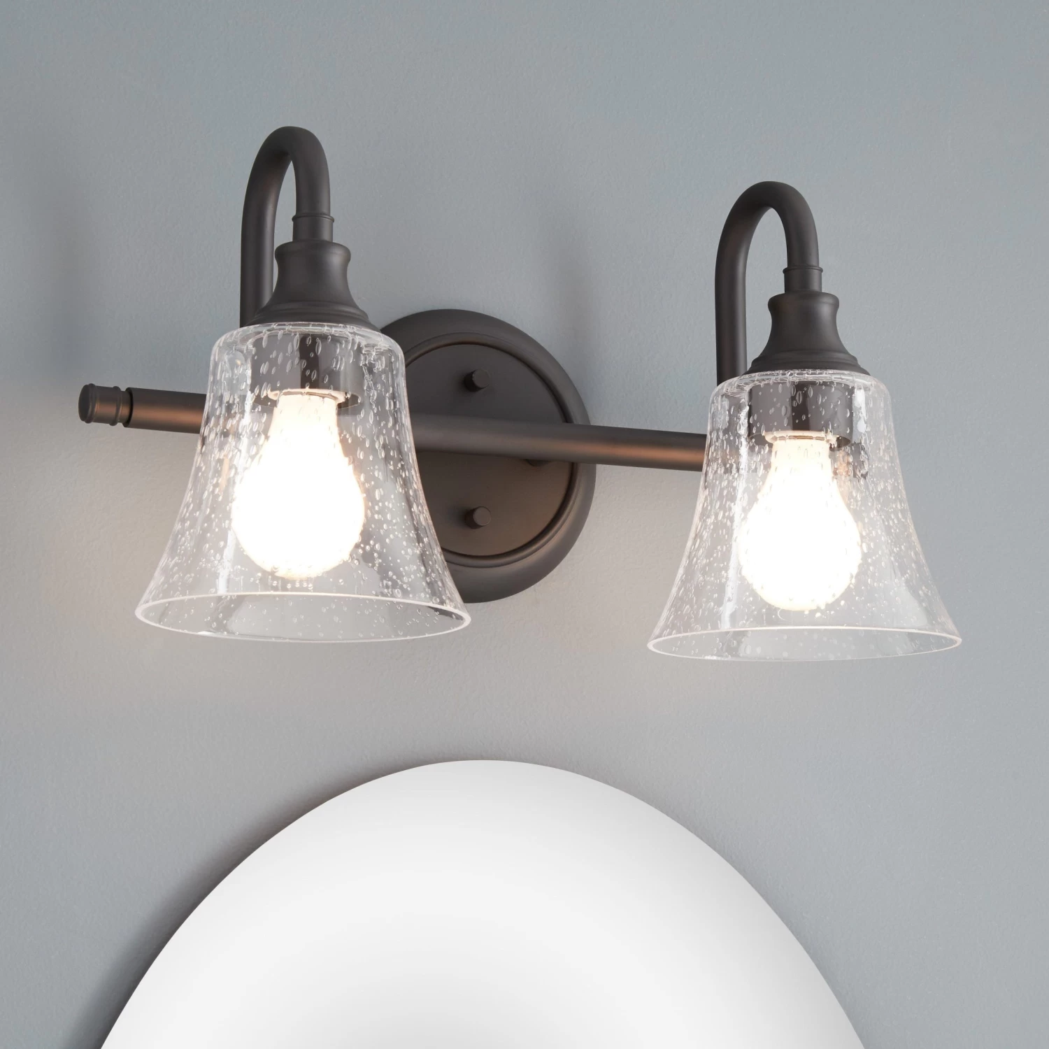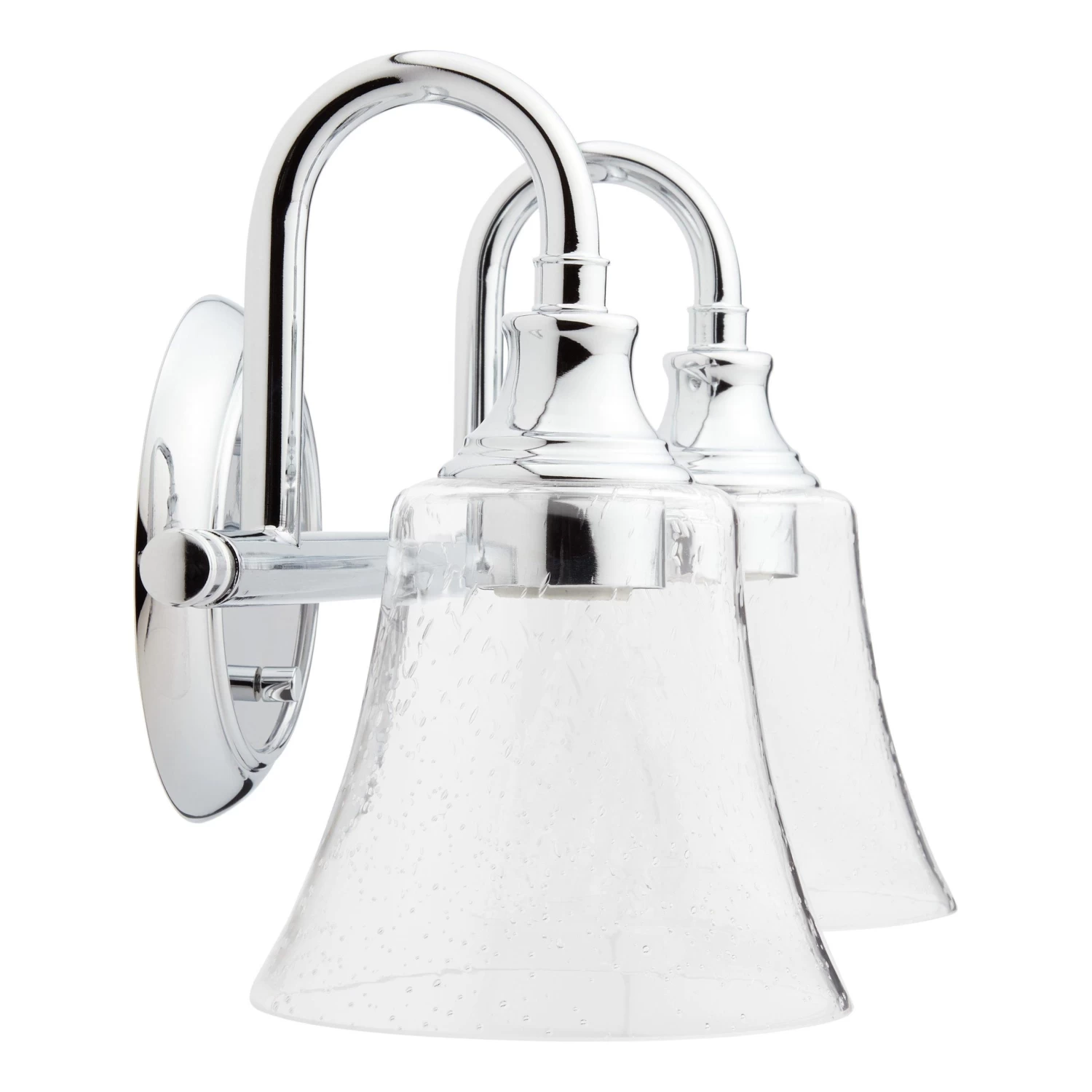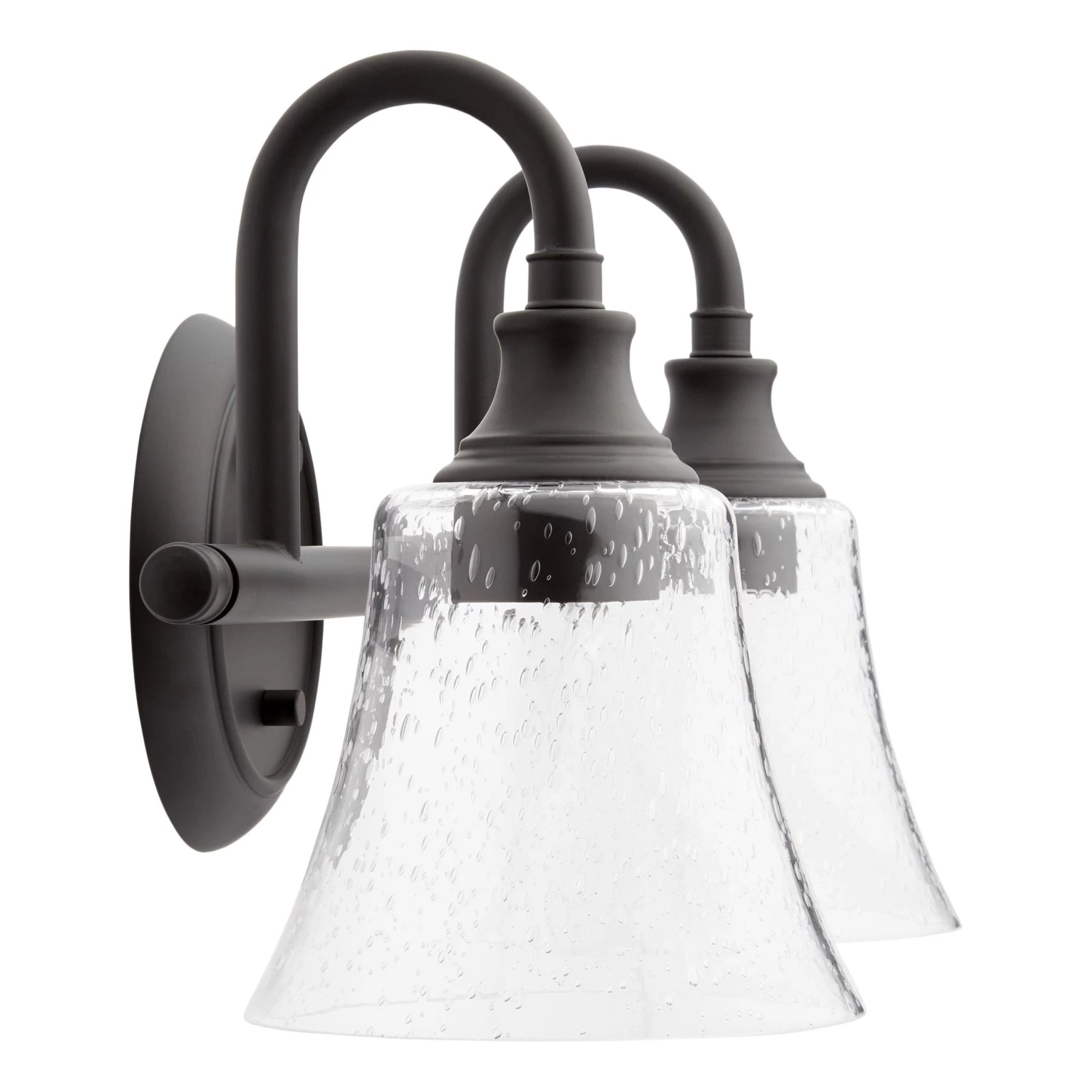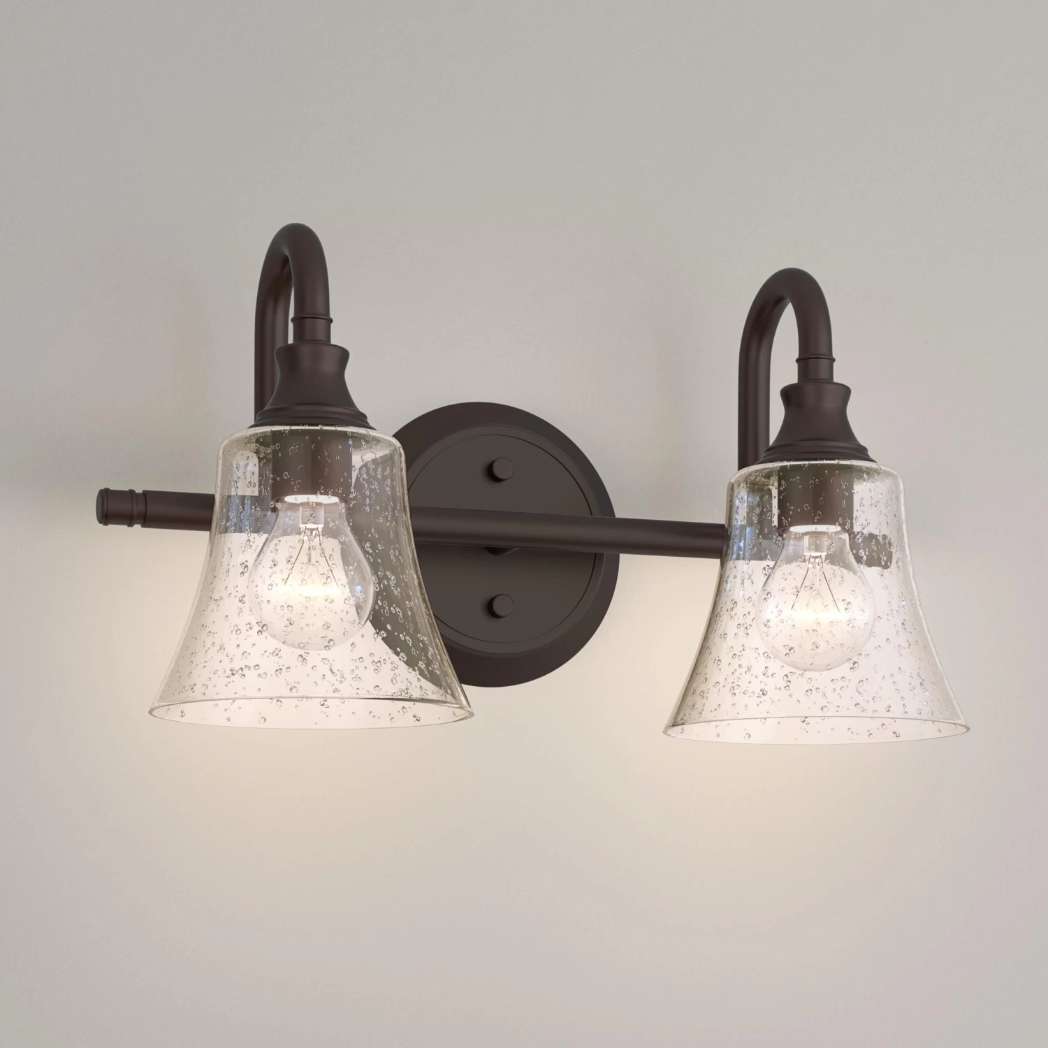 Exuding warm, old-world elegance, the Milldale 2-Light Vanity Light is an exceptional choice for a bathroom featuring a traditional aesthetic. It works well in a transitional space as well, especially if you value the beauty of gentle curves and sturdy, ever-reliable steel. The highlight of its design are the seeded glass shades, lending it a hint of additional visual intrigue. It’s available in a variety of finishes to coordinate with any decor.