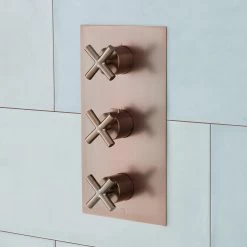 Use the Modern Rectangular Thermostatic Valve for your custom shower update. The four-way diverter gives you the perfect setup to switch between an overhead shower, hand shower, tub spout, or other enhancements you have installed in your bathroom. Thermostatic technology maintains the water temperature to ensure a pleasant showering experience. Made of brass and covered with a corrosion-resistant finish, this product is built to last.