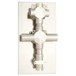 - 3-way diverter features 1/2″ IPS inlets, and controls water flow between 3 shower outlets.
