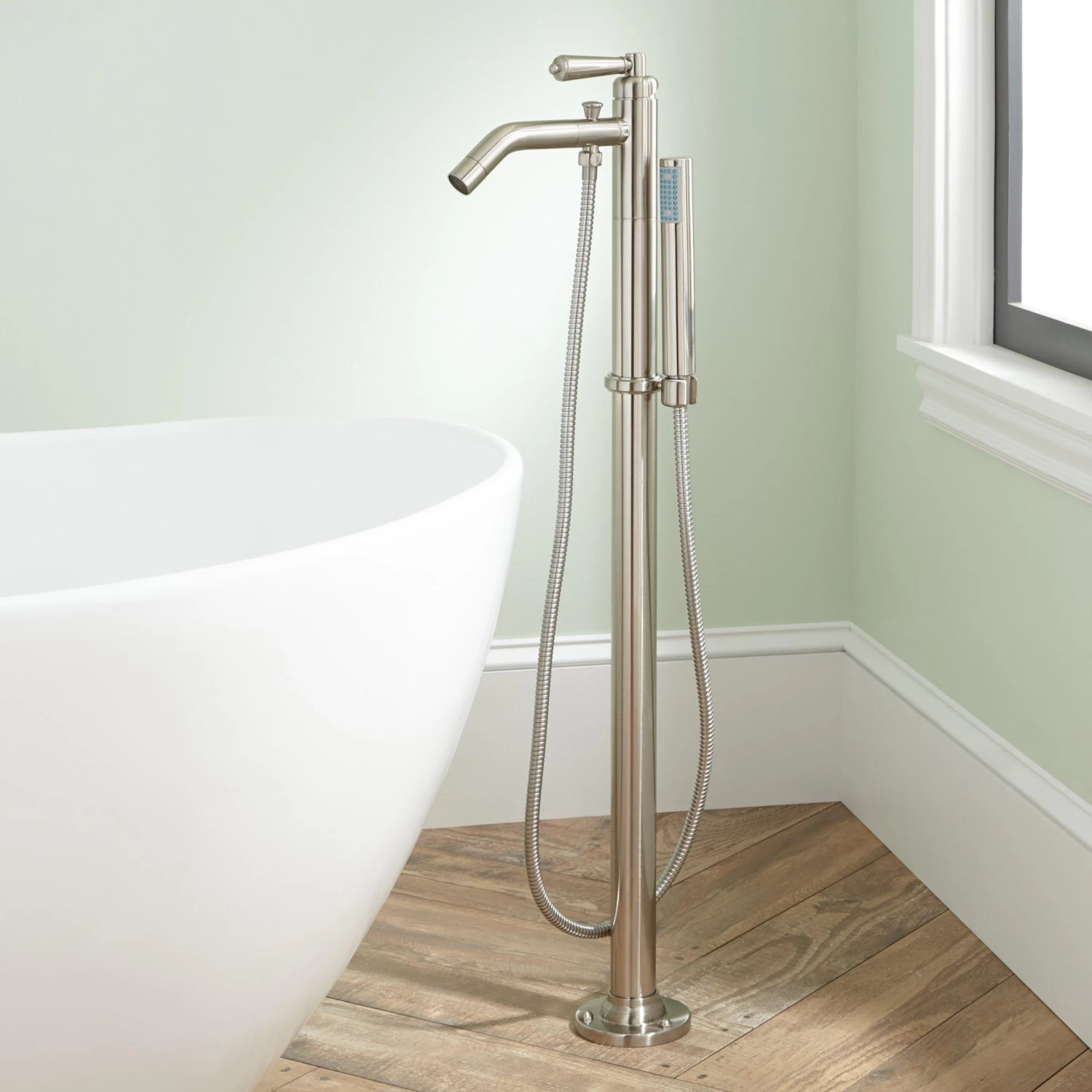 The Napier Tub Faucet will be a lasting enhancement for your bathroom. Made of high quality materials, this product has durability and heft. A beautiful finish has been applied to the faucet and hand shower to coordinate with other fixtures in your space. The freestanding design includes a mounting plate to deliver reliable support on tile or wood floors.