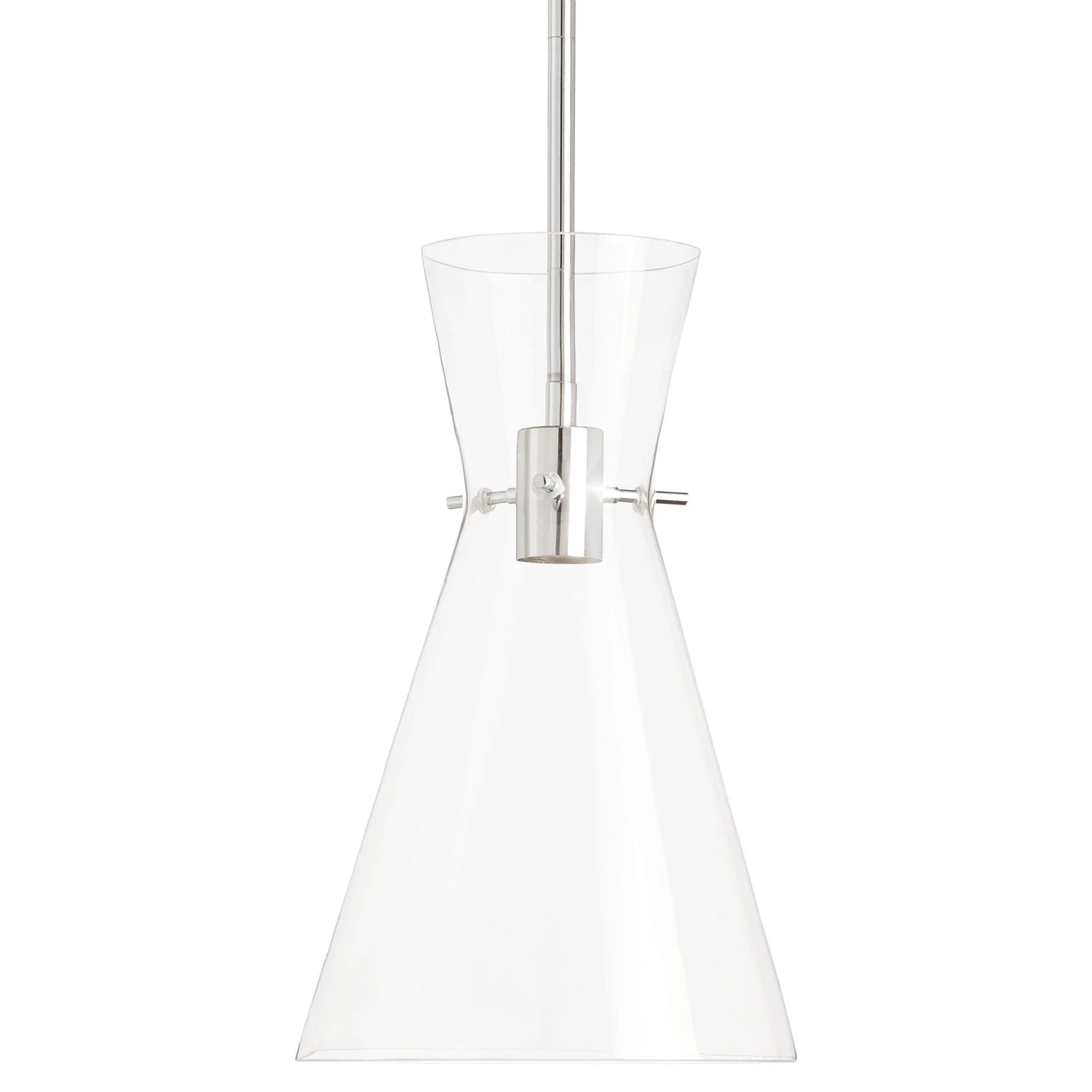 The Odell Pendant Light effortlessly complements modern and contemporary decor. Its clear glass shade flaunts a stylish hourglass figure, surrounding a polished chrome bulb socket. With a sturdy downrod made of metal, the fixture is held firmly in place and built to last. Mounting hardware is included for easy installation.