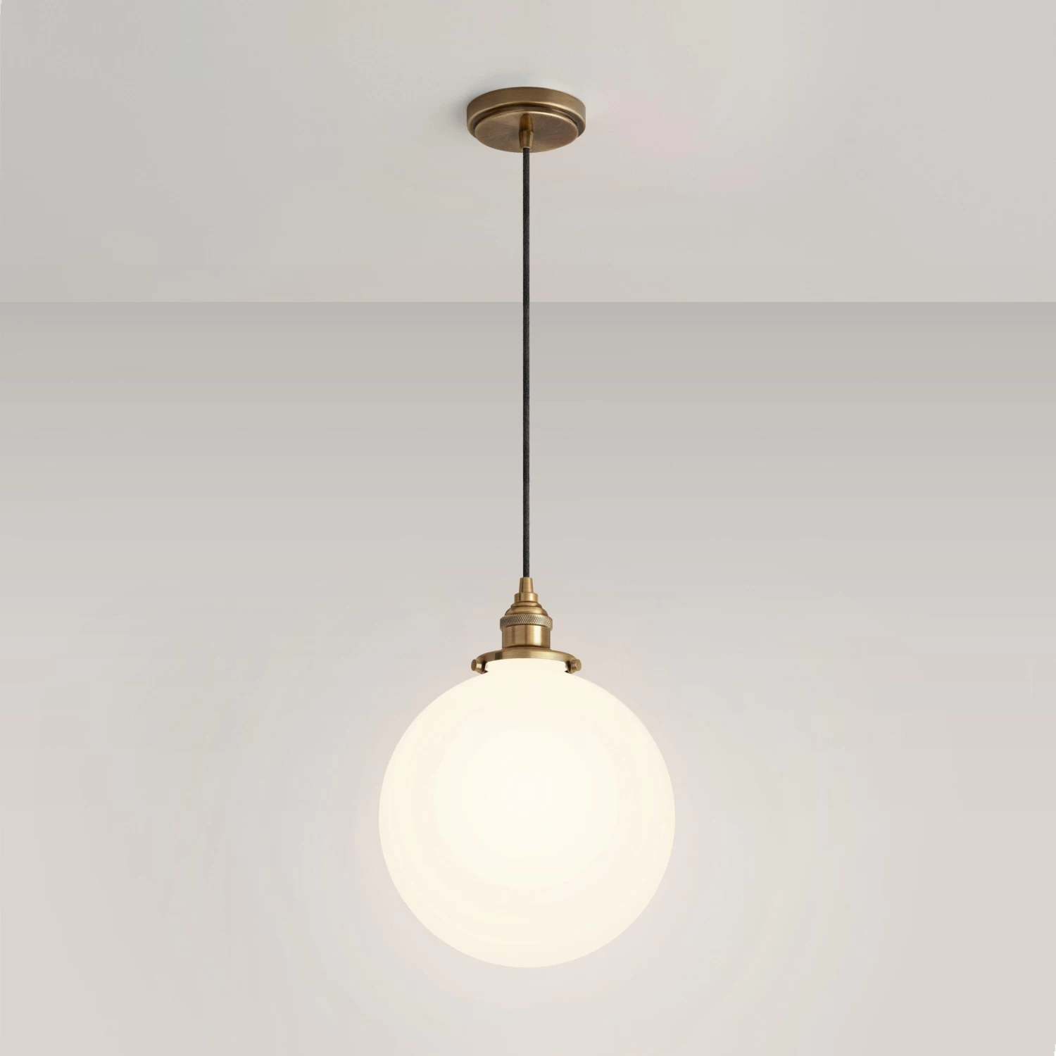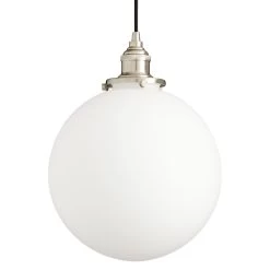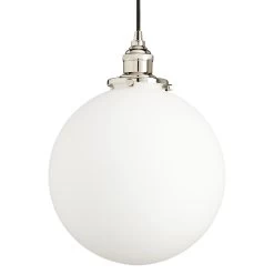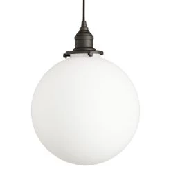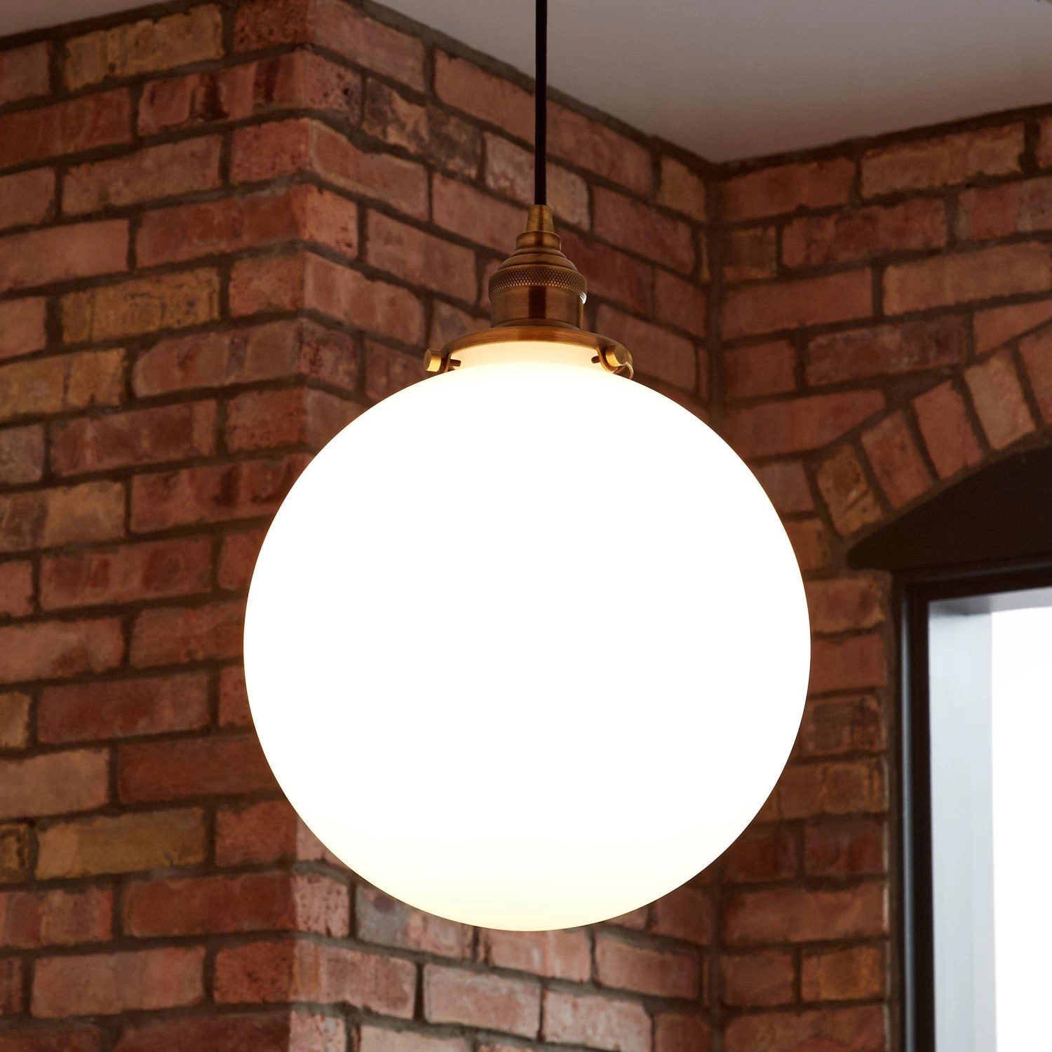 Versatile styling allows the Orchard Pendant Light with Opal Shade to work in rooms from traditional to modern. This contemporary take on a classic style features a round globe made of glass that encompasses a single bulb. A metal canopy and holder stably suspend the fixture from the ceiling to ensure lasting beauty. Mounting hardware is included for easy installation.
